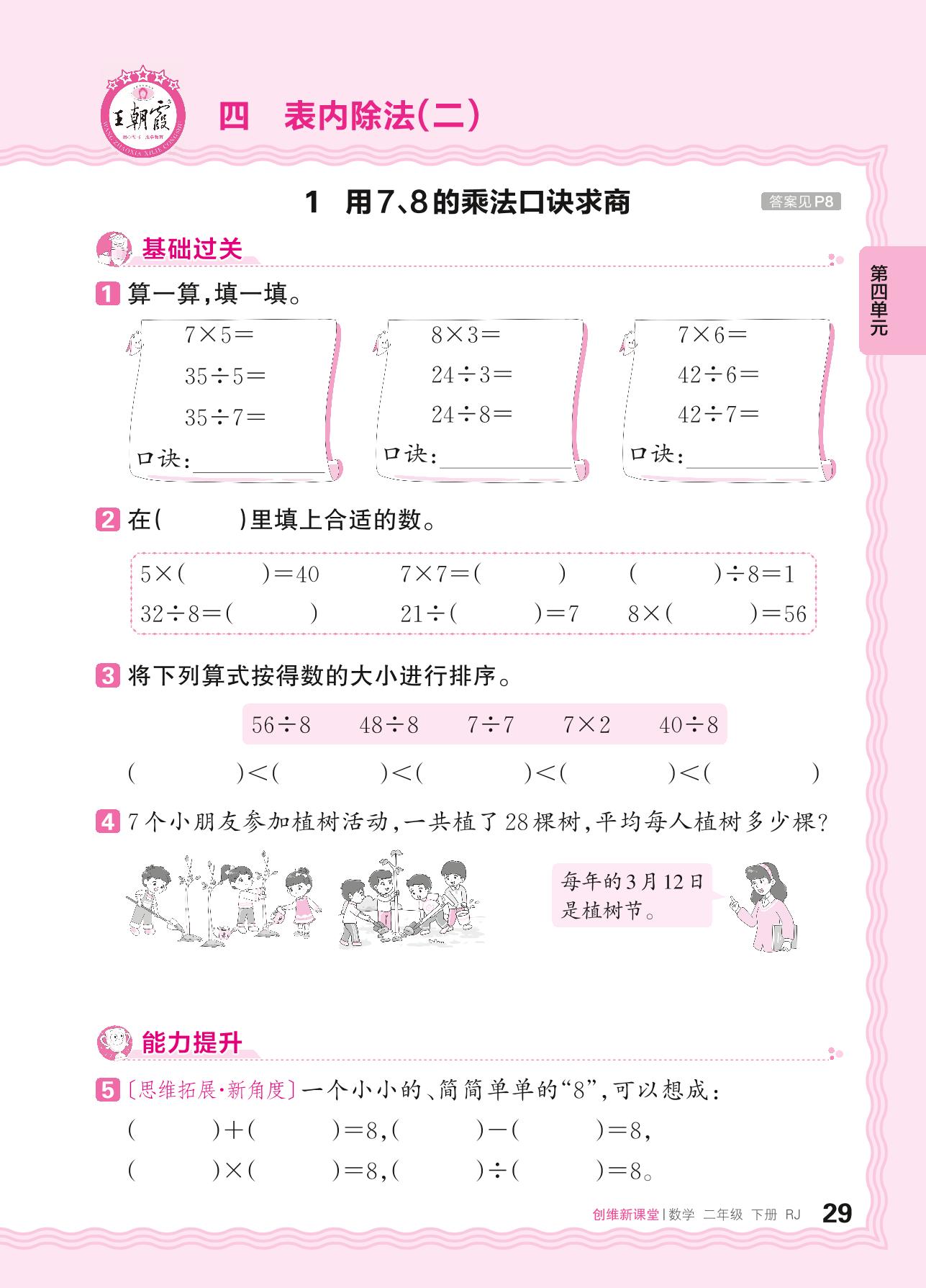2024春下册二年级数学人教版 第四单元 表内除法(二)——1. 用7、8的乘法口诀求商