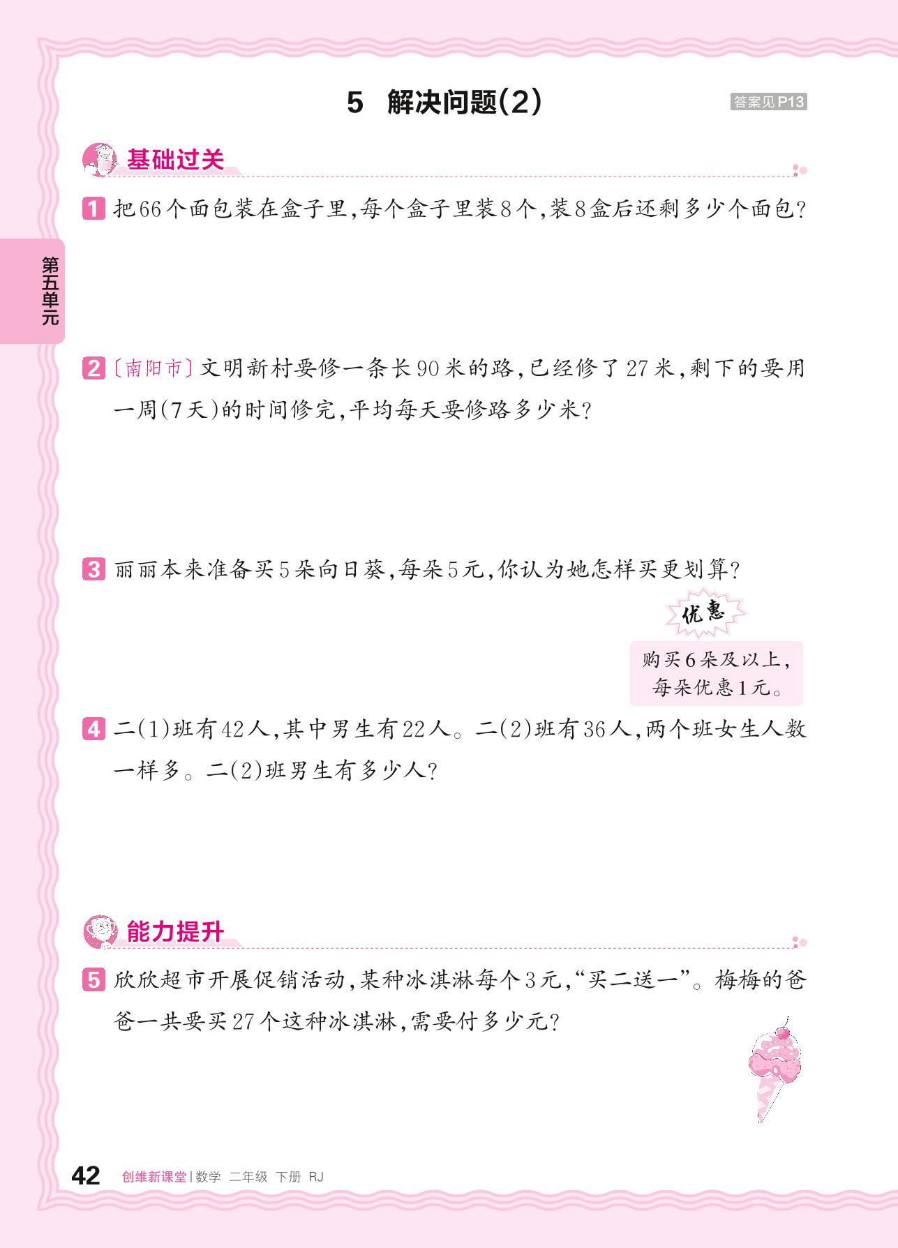 2024春下册二年级数学人教版 第五单元 混合运算——5. 解决问题(2)