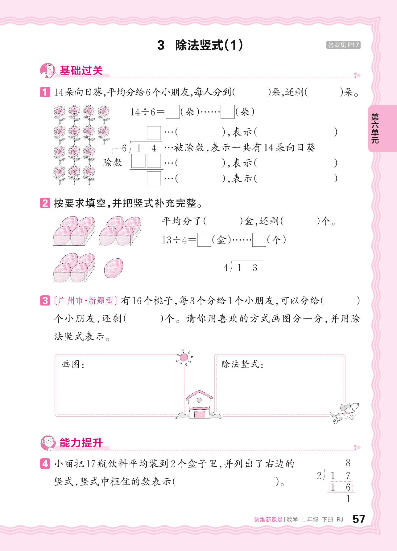 2024春下册二年级数学人教版 第六单元 有余数的除法——3. 除法竖式(1)