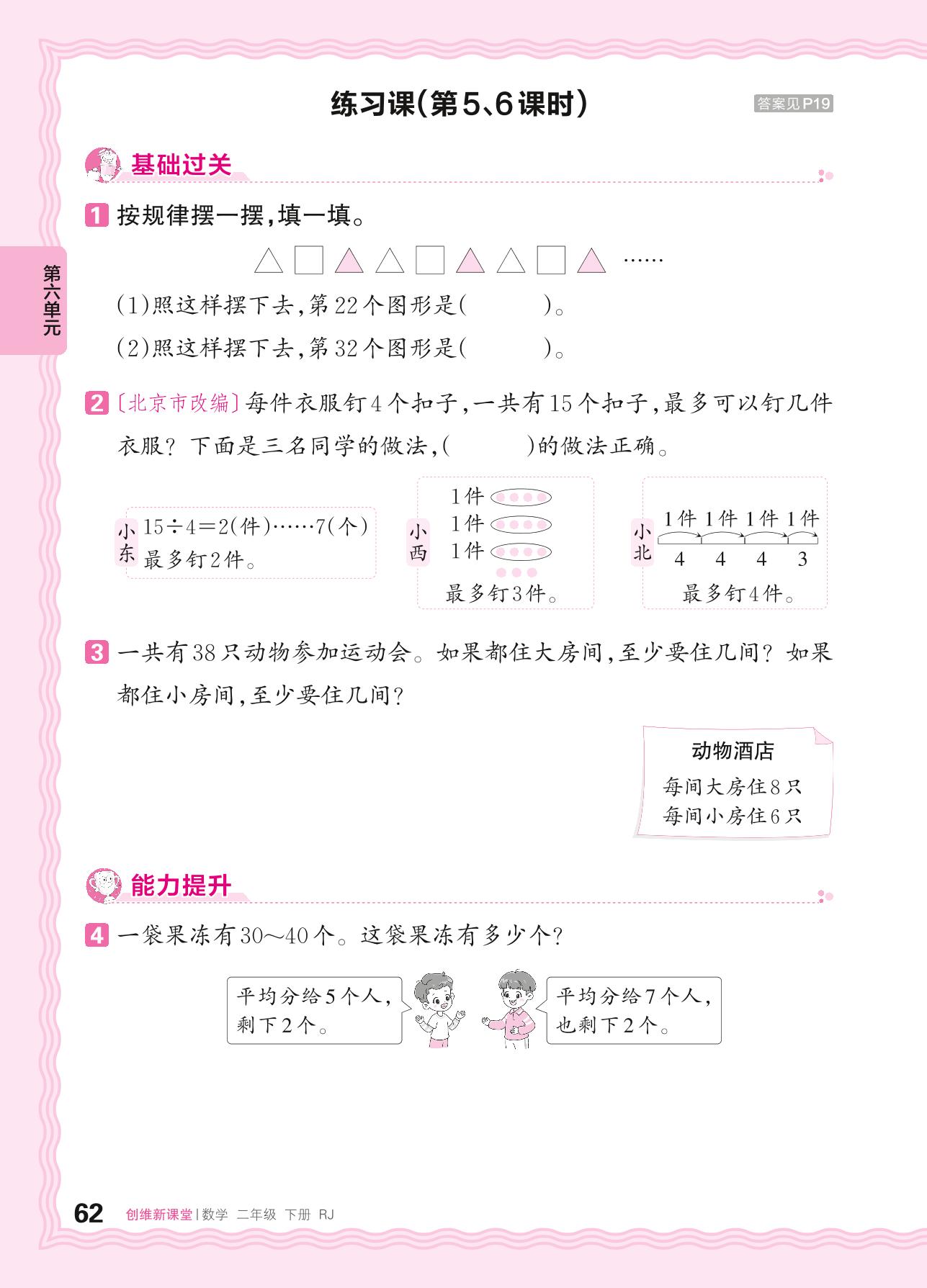 2024春下册二年级数学人教版 第六单元 有余数的除法——解决问题练习课