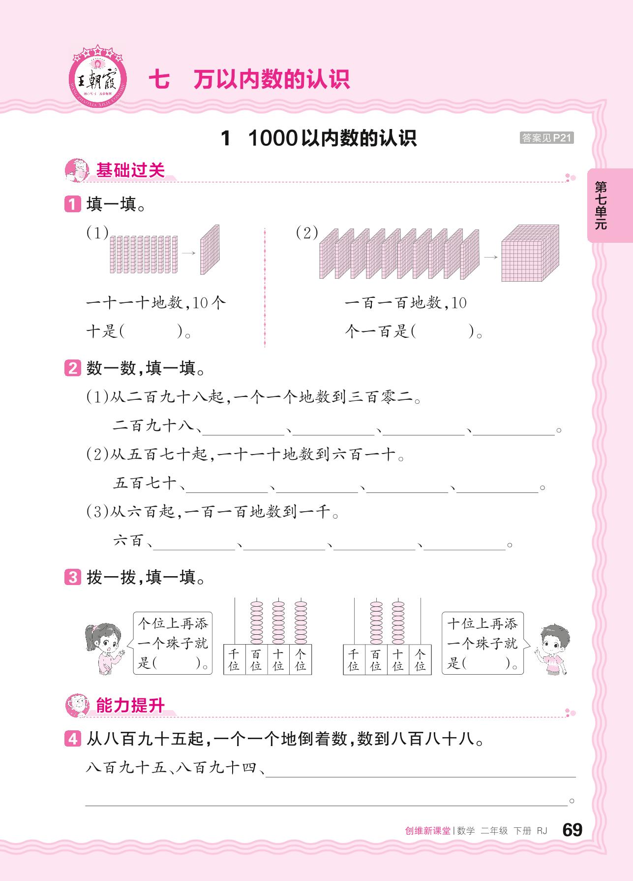 2024春下册二年级数学人教版 第七单元 万以内数的认识——1. 1000以内数的认识_R240122162747607