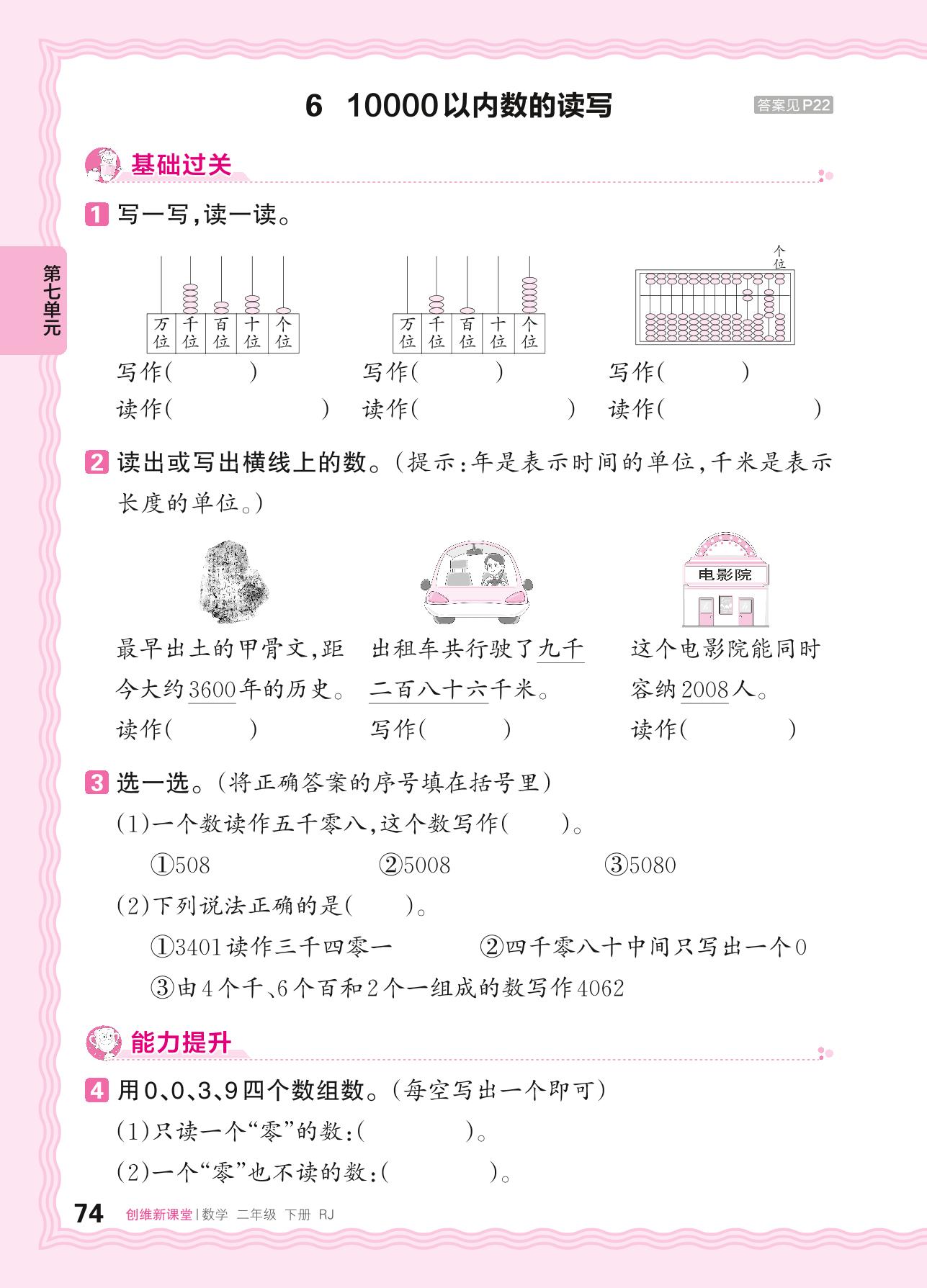 2024春下册二年级数学人教版 第七单元 万以内数的认识——6. 10000以内数的读写_R240122162748479