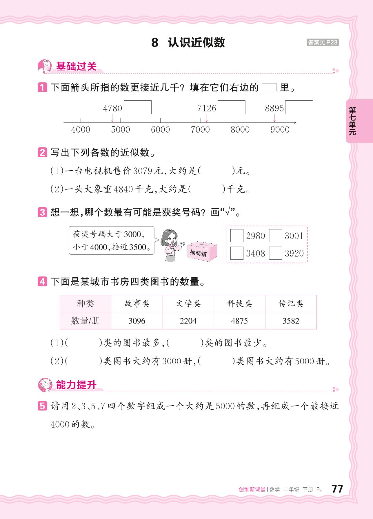 2024春下册二年级数学人教版 第七单元 万以内数的认识——8. 认识近似数