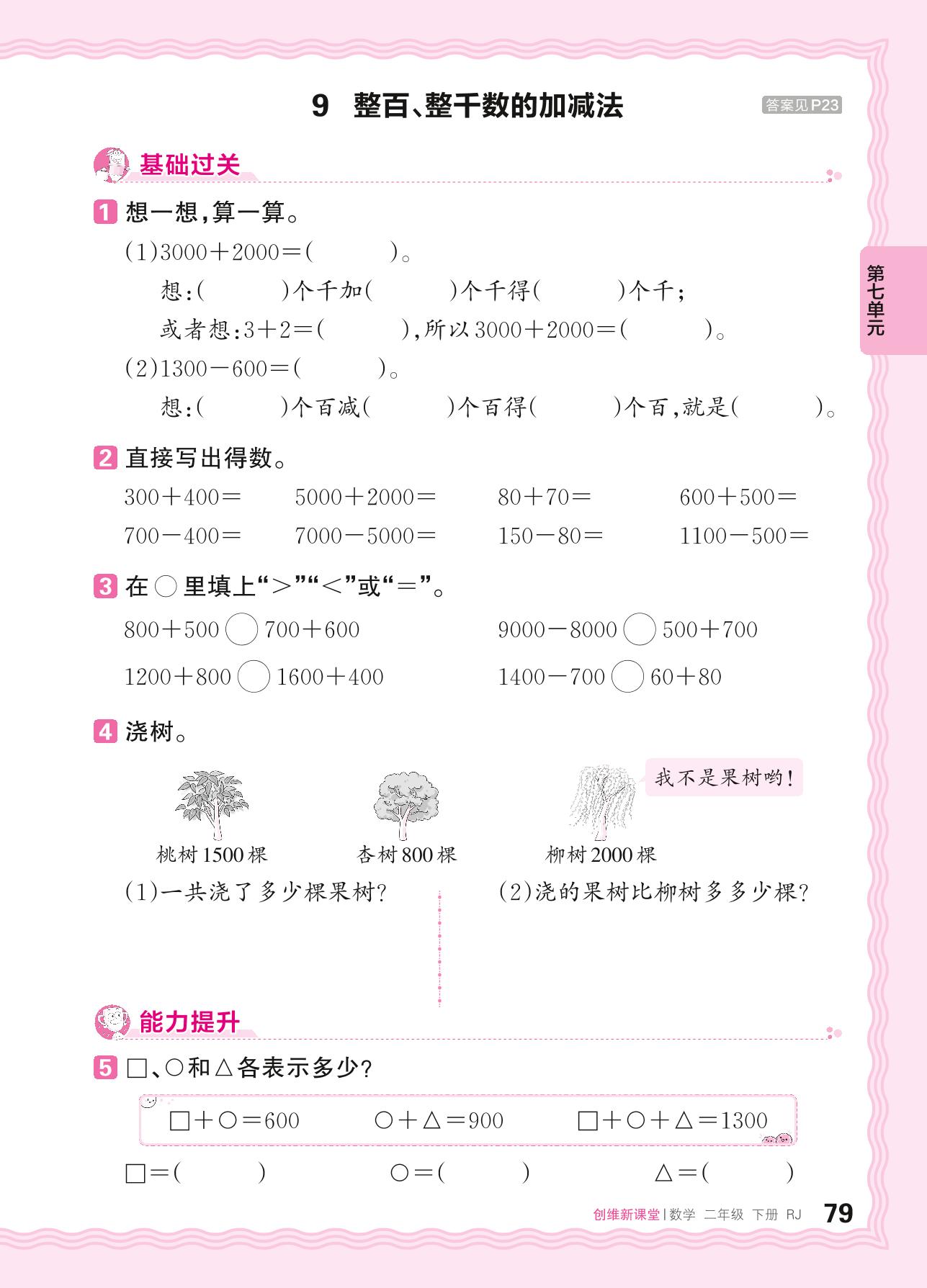 2024春下册二年级数学人教版 第七单元 万以内数的认识——9. 整百、整千数的加减法