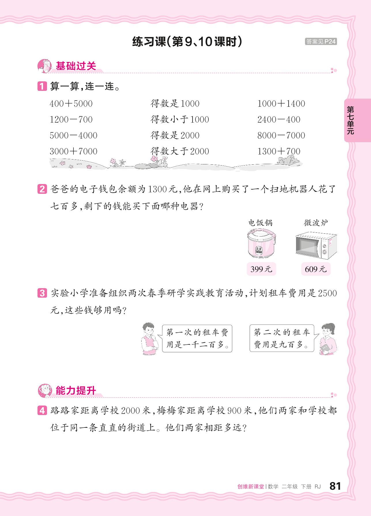 2024春下册二年级数学人教版 第七单元 万以内数的认识——整百、整千数的加减法 用估算解决问题练习课