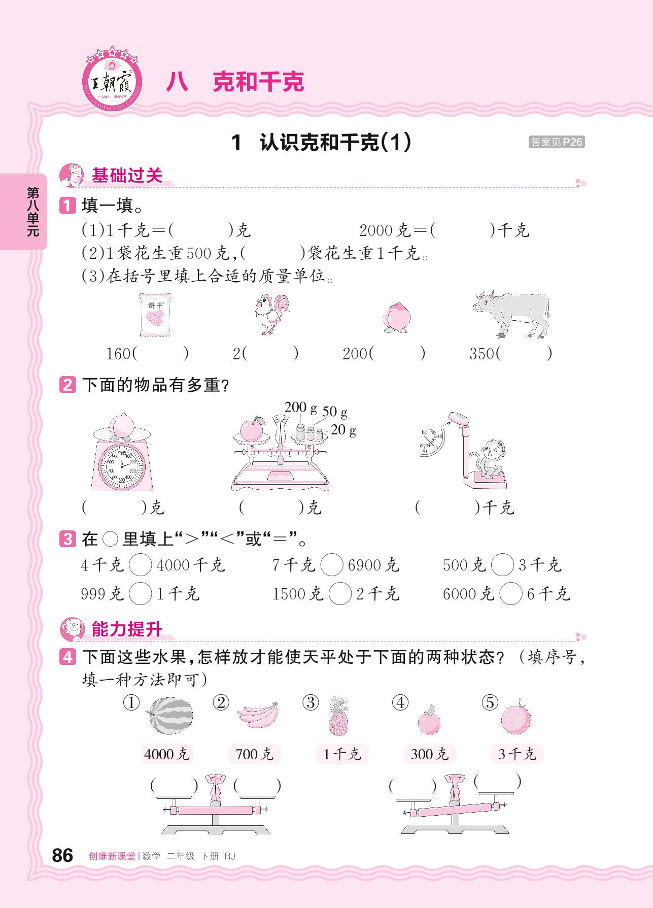 2024春下册二年级数学人教版 第八单元 克和千克——1. 认识克和千克(1)