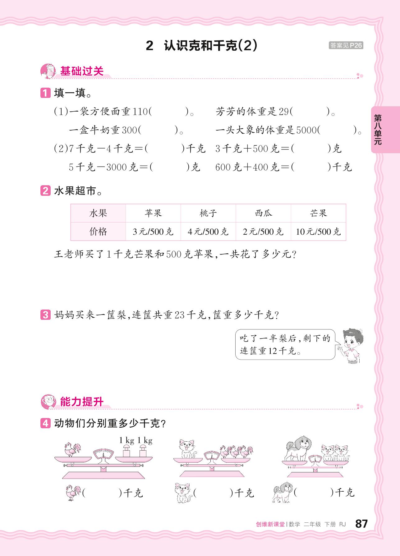 2024春下册二年级数学人教版 第八单元 克和千克——2. 认识克和千克(2)