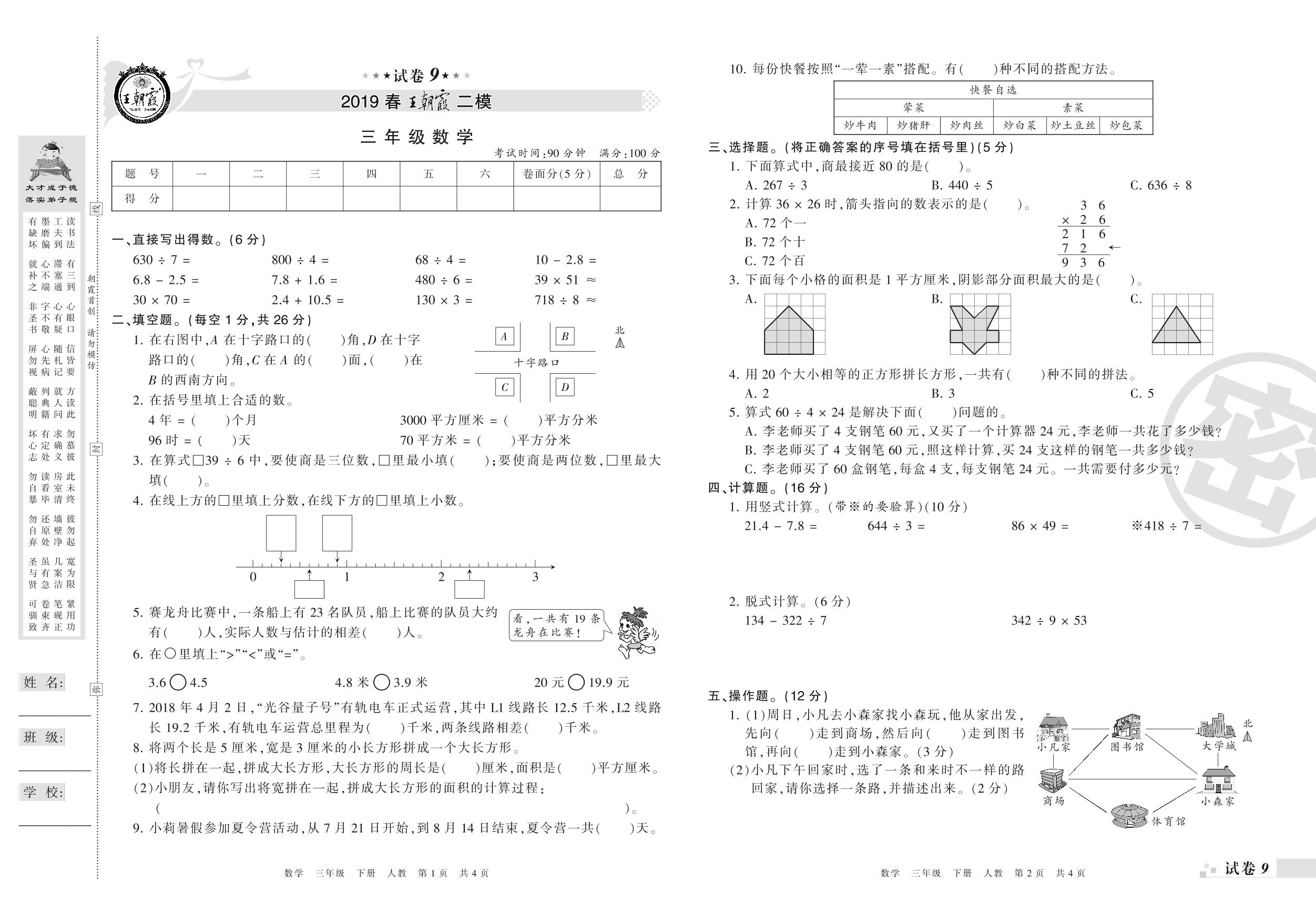 王朝霞期末模拟卷三年级下册数学(人教版)_R210804102315【9】