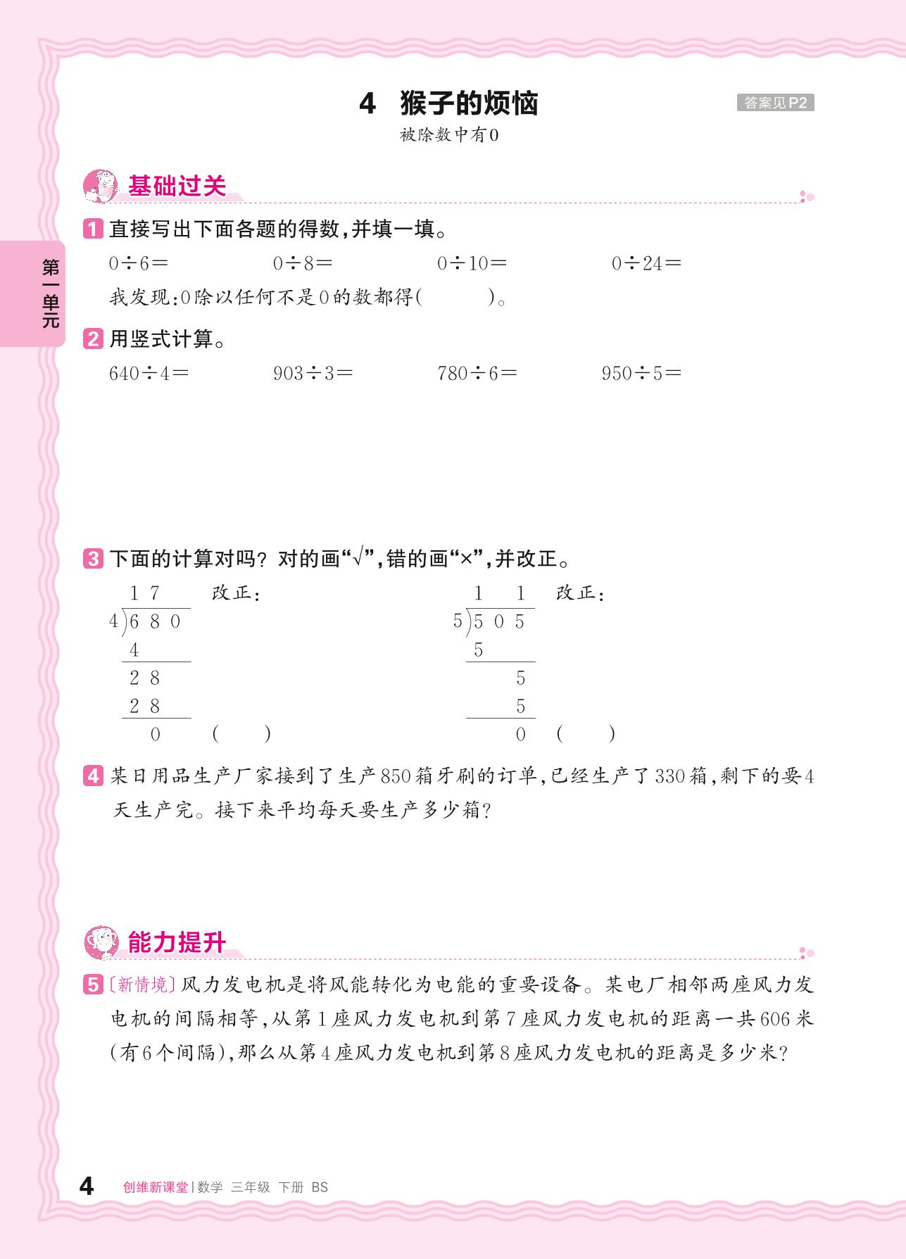 2024春下册三年级数学北师版 第一单元 除法——4. 猴子的烦恼