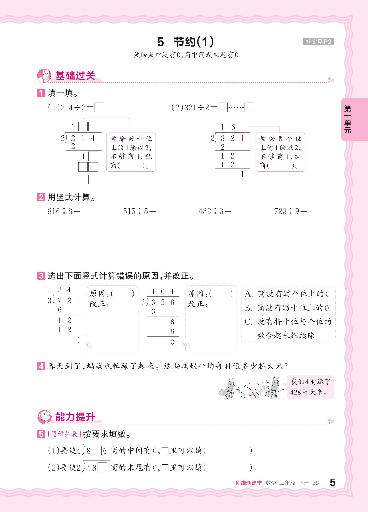 2024春下册三年级数学北师版 第一单元 除法——5. 节约(1)