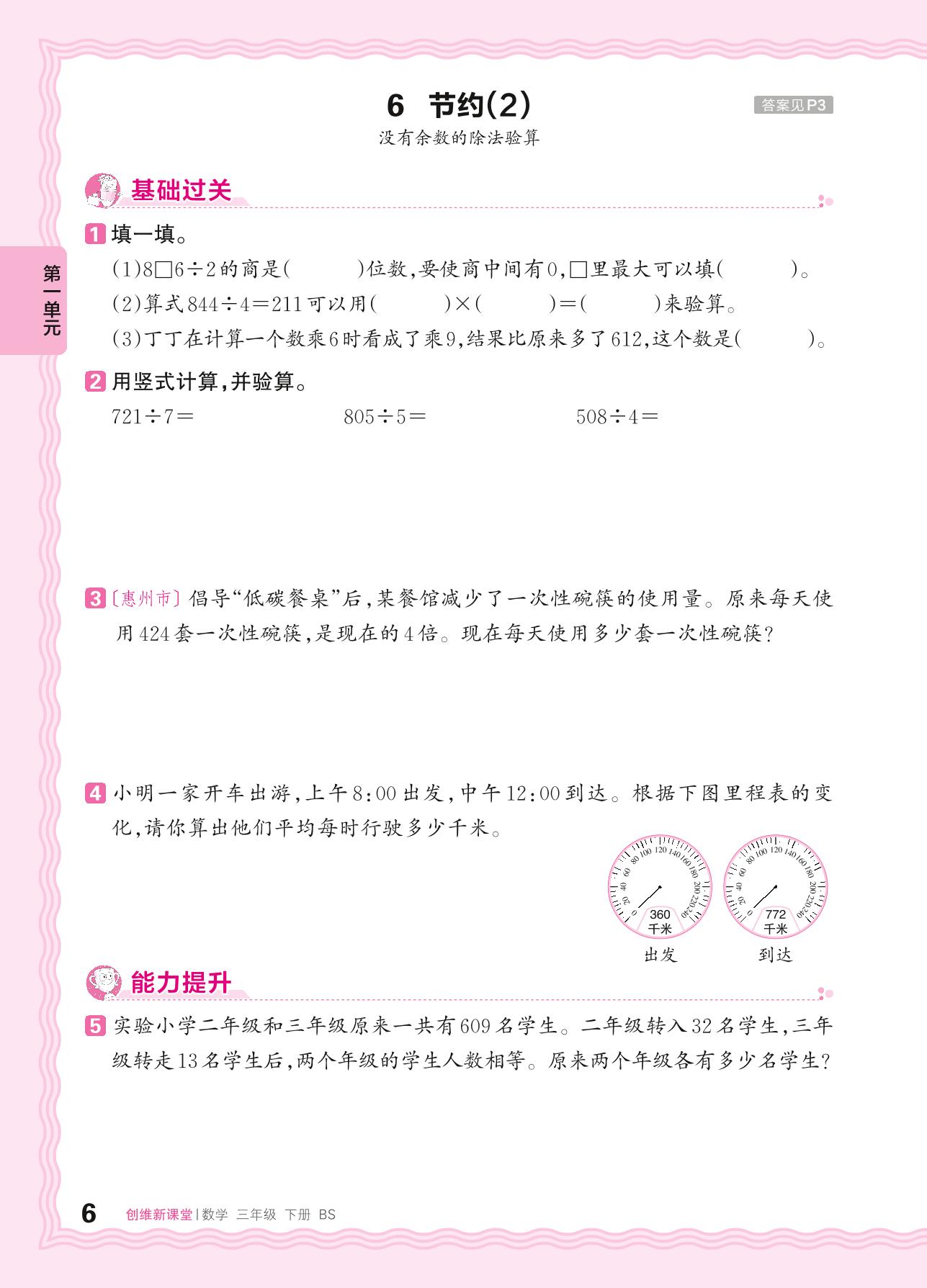 2024春下册三年级数学北师版 第一单元 除法——6. 节约(2)