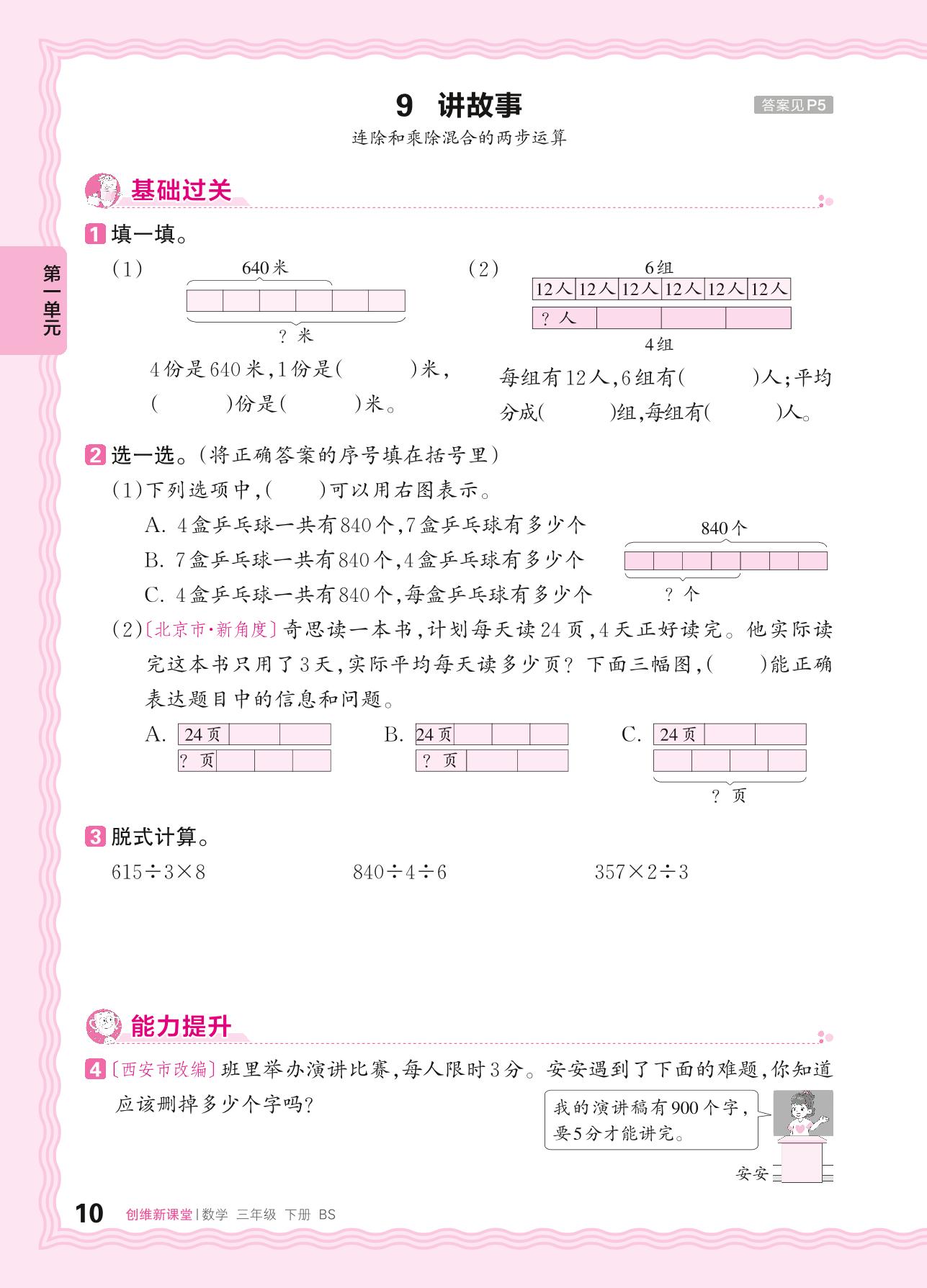 2024春下册三年级数学北师版 第一单元 除法——9. 讲故事