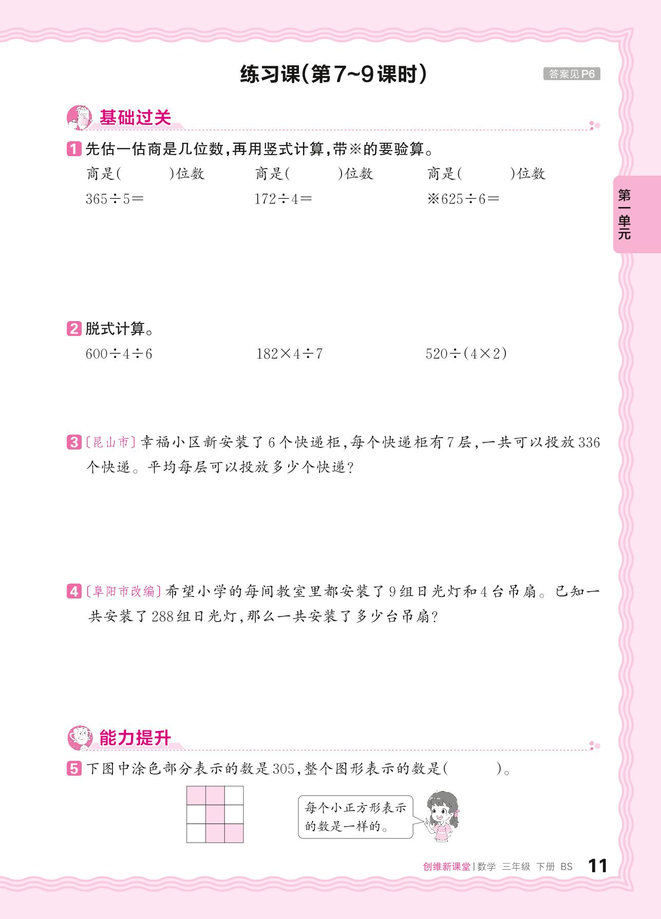 2024春下册三年级数学北师版 第一单元 除法——集邮、买新书、讲故事练习课