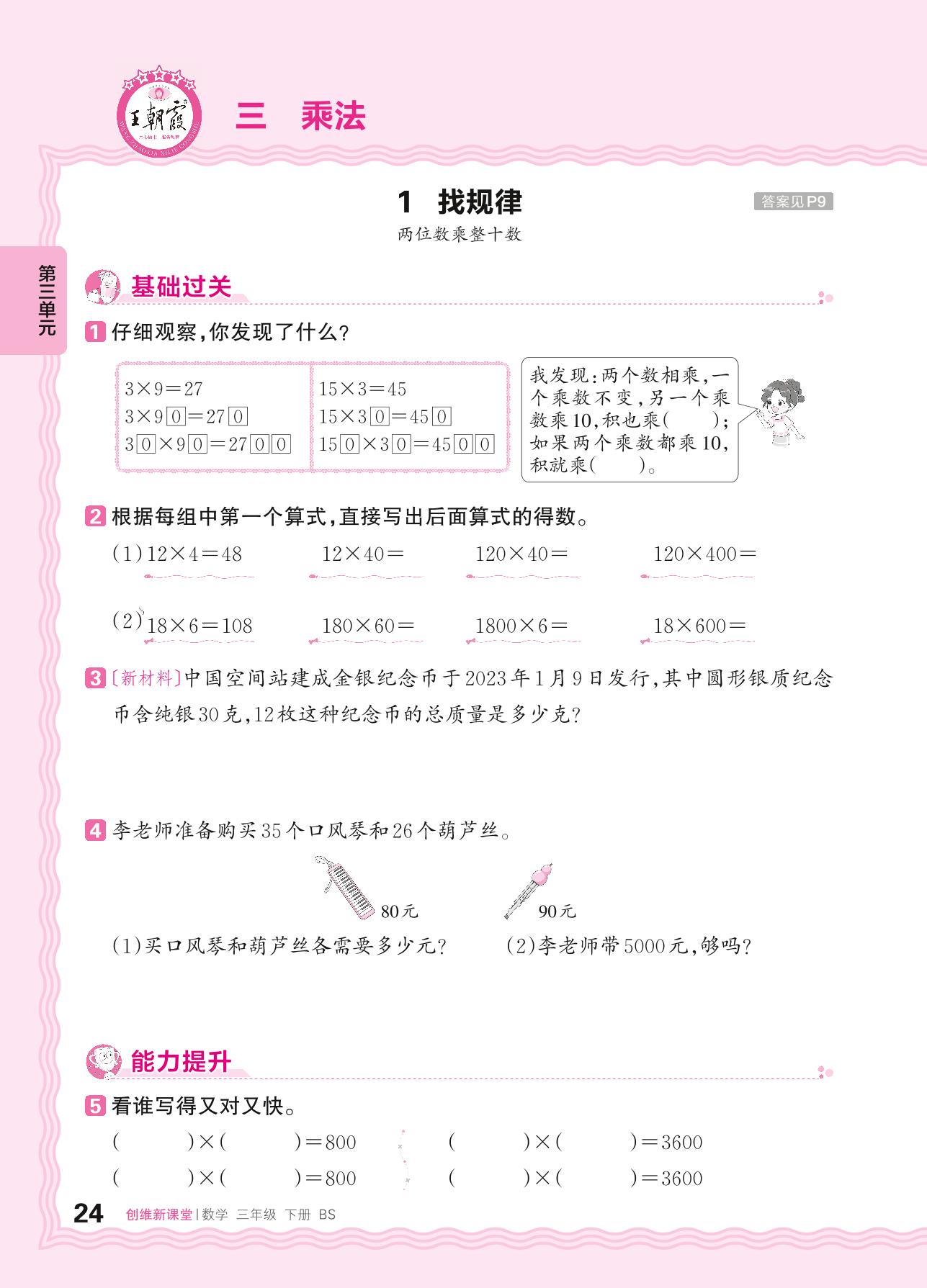 2024春下册三年级数学北师版 第三单元 乘法——1. 找规律
