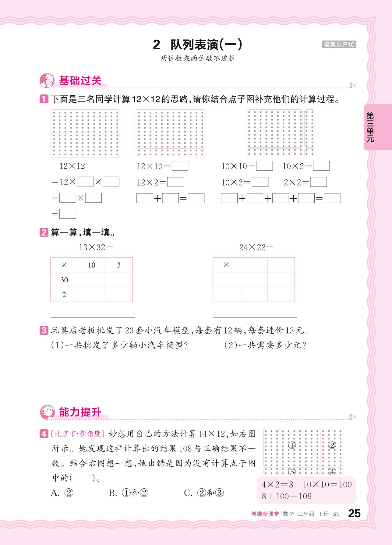 2024春下册三年级数学北师版 第三单元 乘法——2. 队列表演(一)