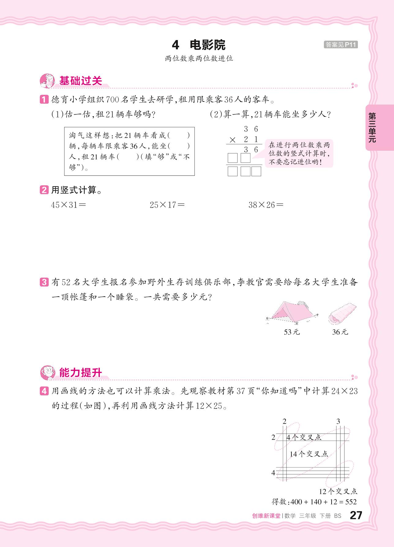 2024春下册三年级数学北师版 第三单元 乘法——4. 电影院