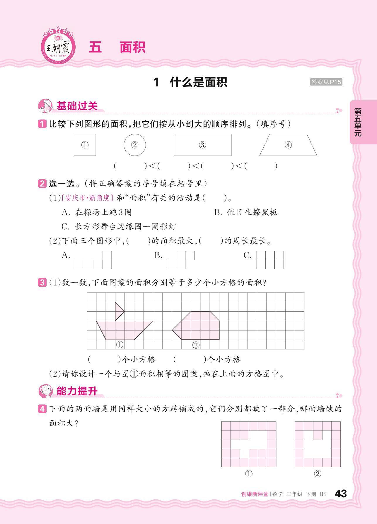 2024春下册三年级数学北师版 第五单元 面积——1. 什么是面积