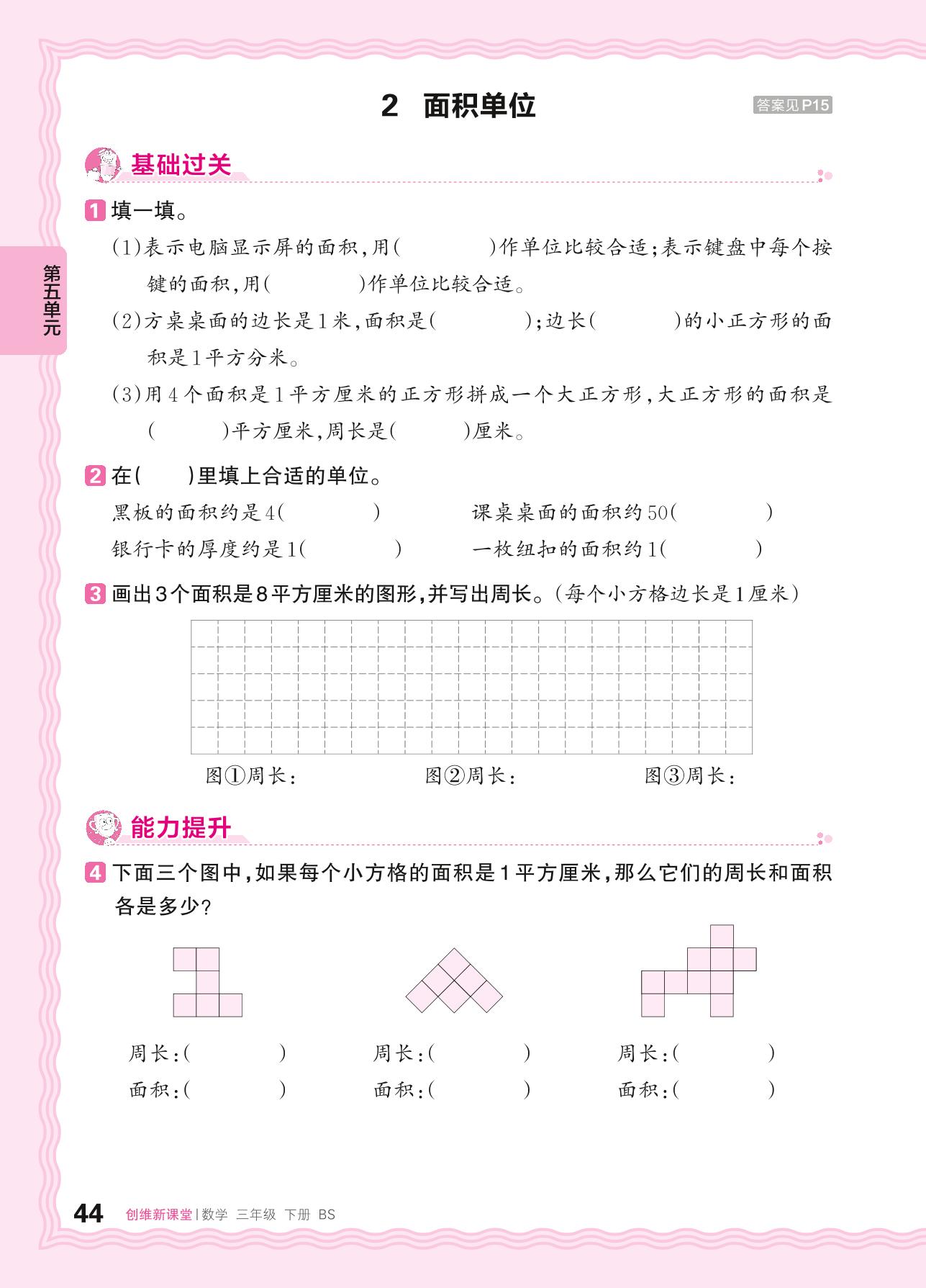 2024春下册三年级数学北师版 第五单元 面积——2. 面积单位