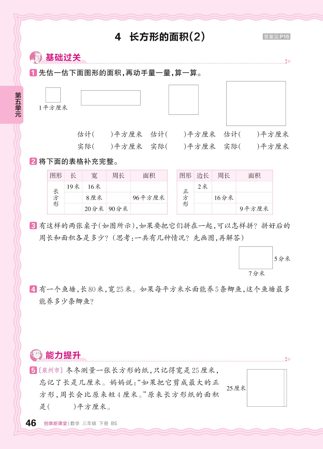 2024春下册三年级数学北师版 第五单元 面积——4. 长方形的面积(2)