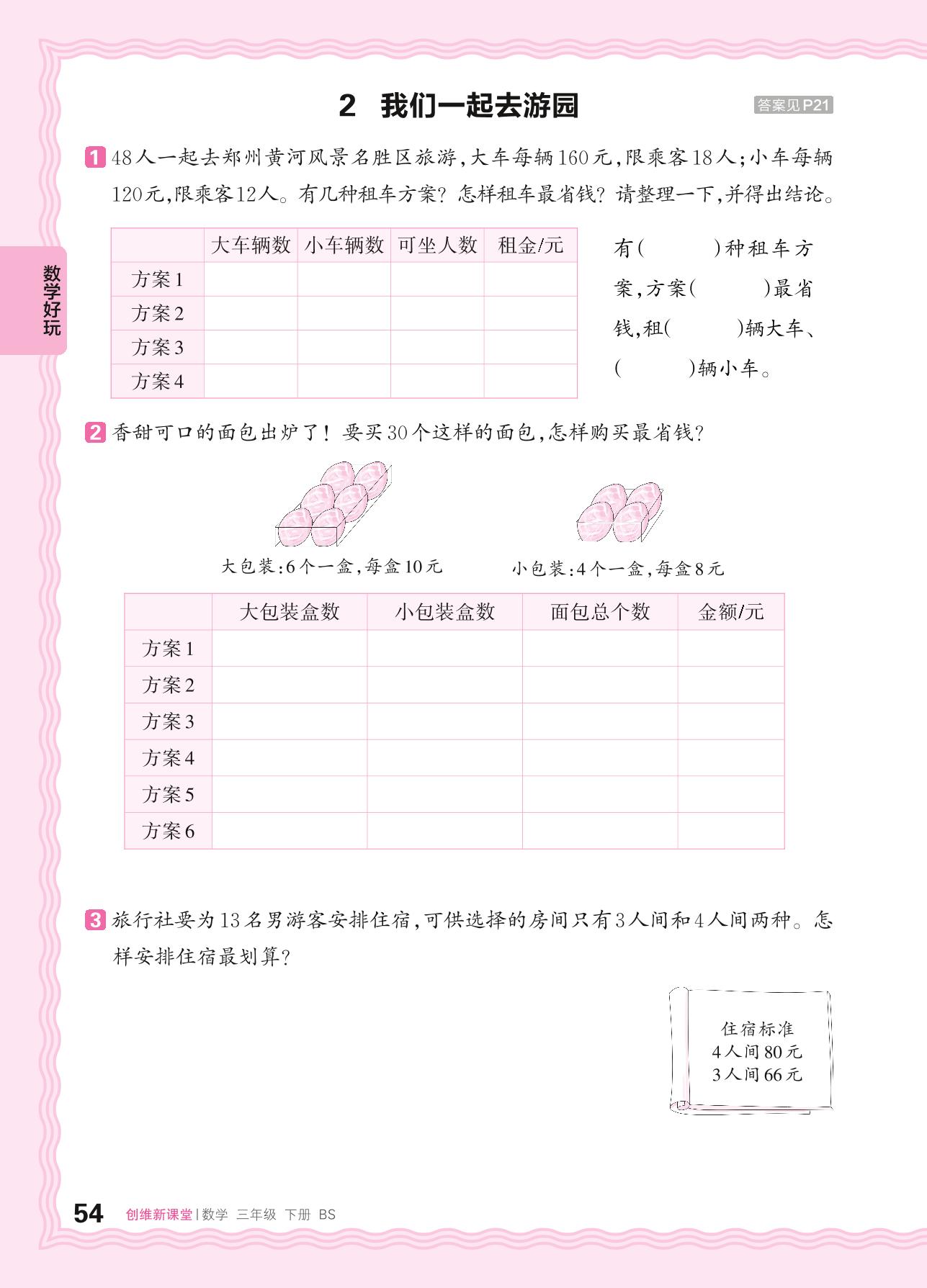 2024春下册三年级数学北师版 数学好玩——2. 我们一起去游园