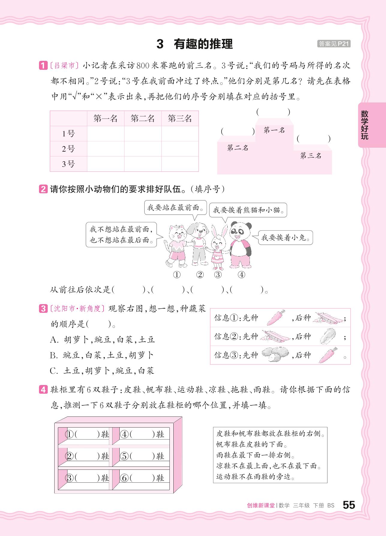 2024春下册三年级数学北师版 数学好玩——3. 有趣的推理