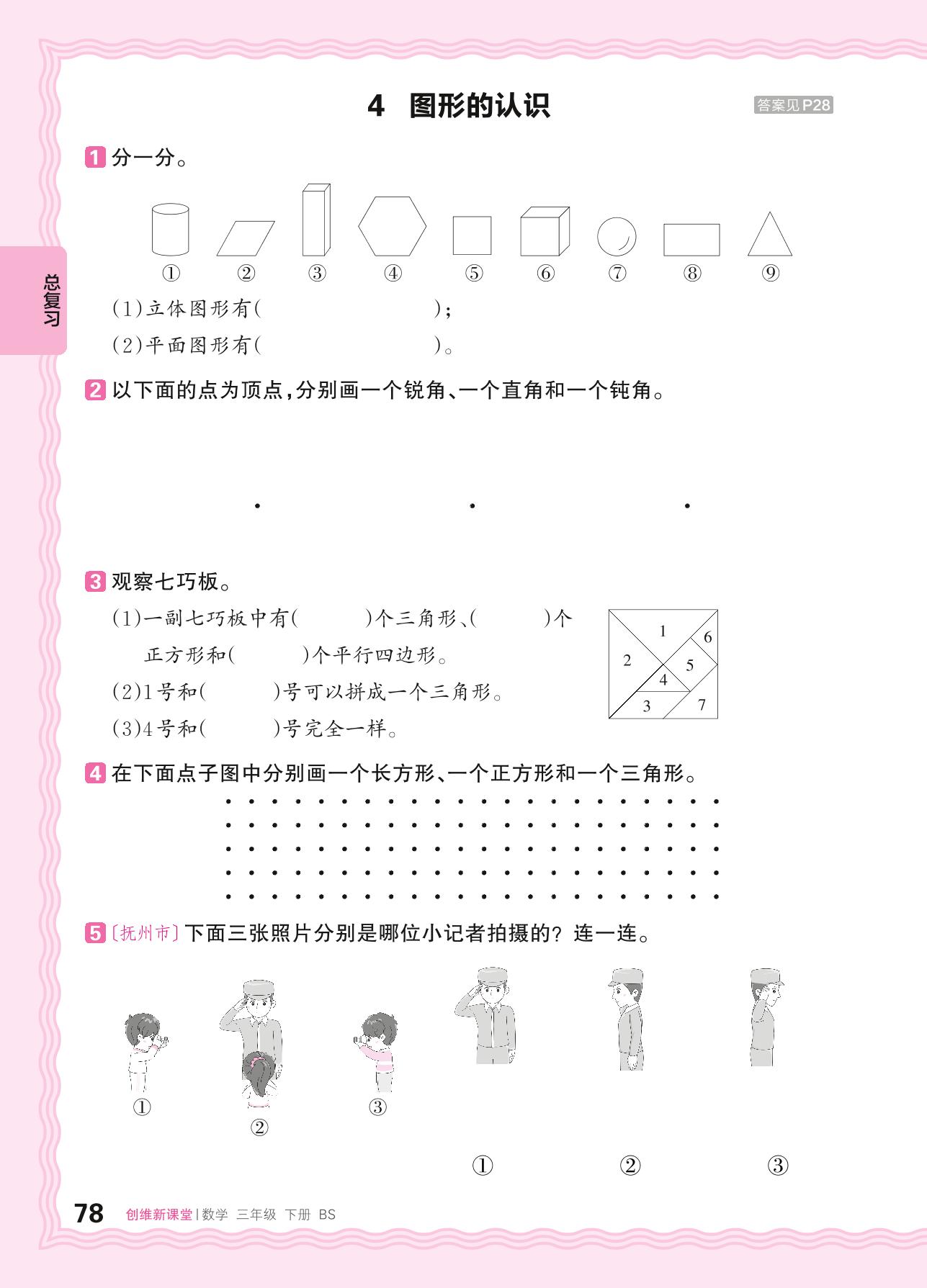 2024春下册三年级数学北师版 总复习——4. 图形的认识