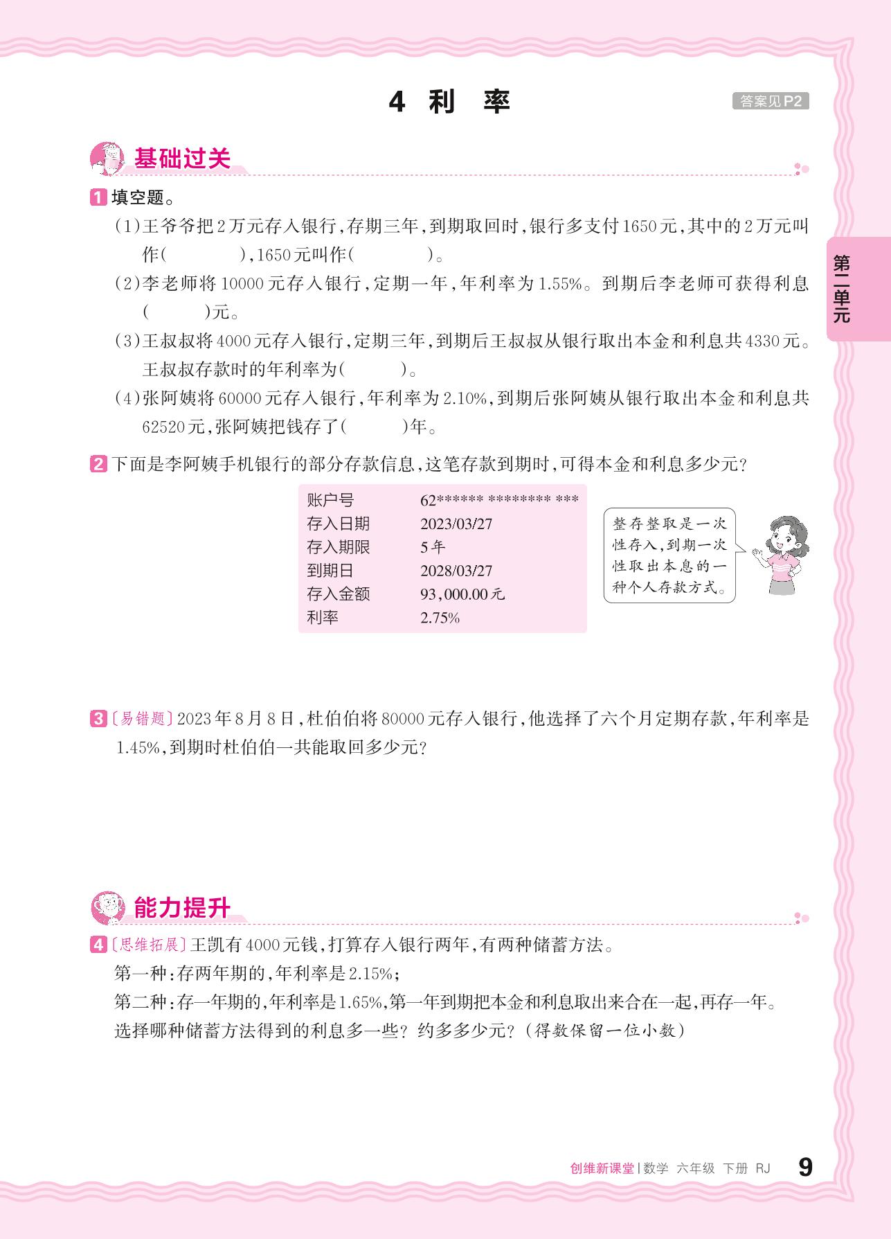 2024春下册六年级数学人教版 第二单元 百分数(二)——4. 利率_R240122165929945