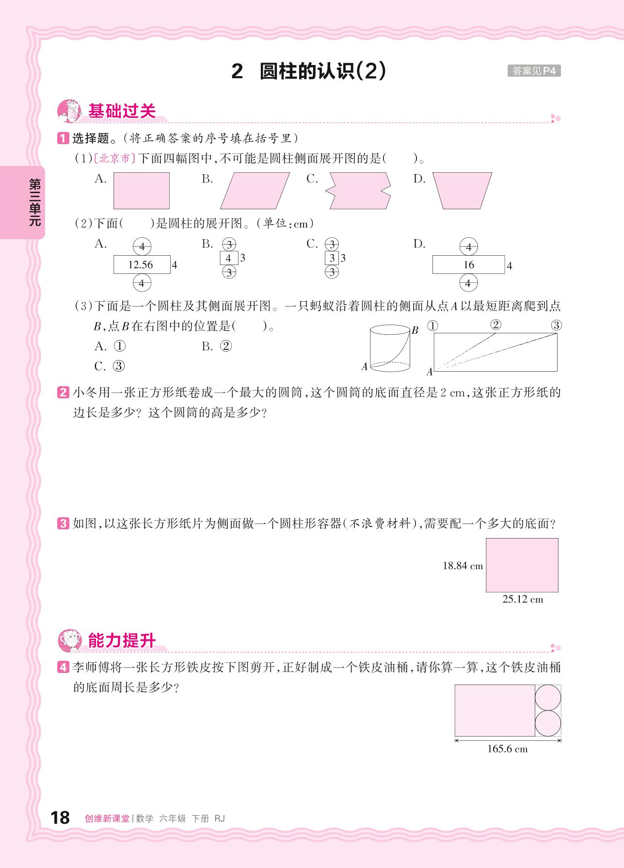 2024春下册六年级数学人教版 第三单元 圆柱与圆锥——2. 圆柱的认识(2)