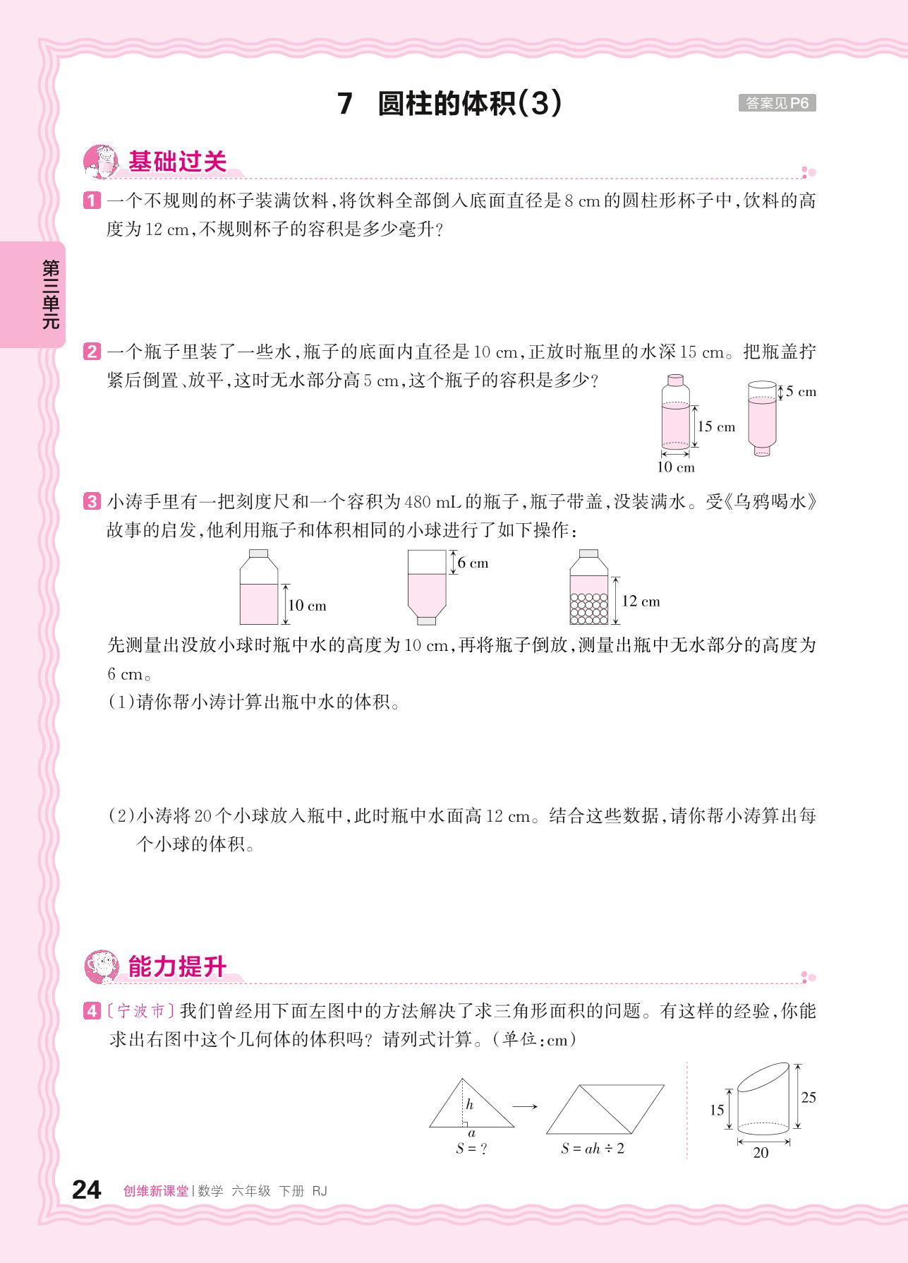 2024春下册六年级数学人教版 第三单元 圆柱与圆锥——7. 圆柱的体积(3)