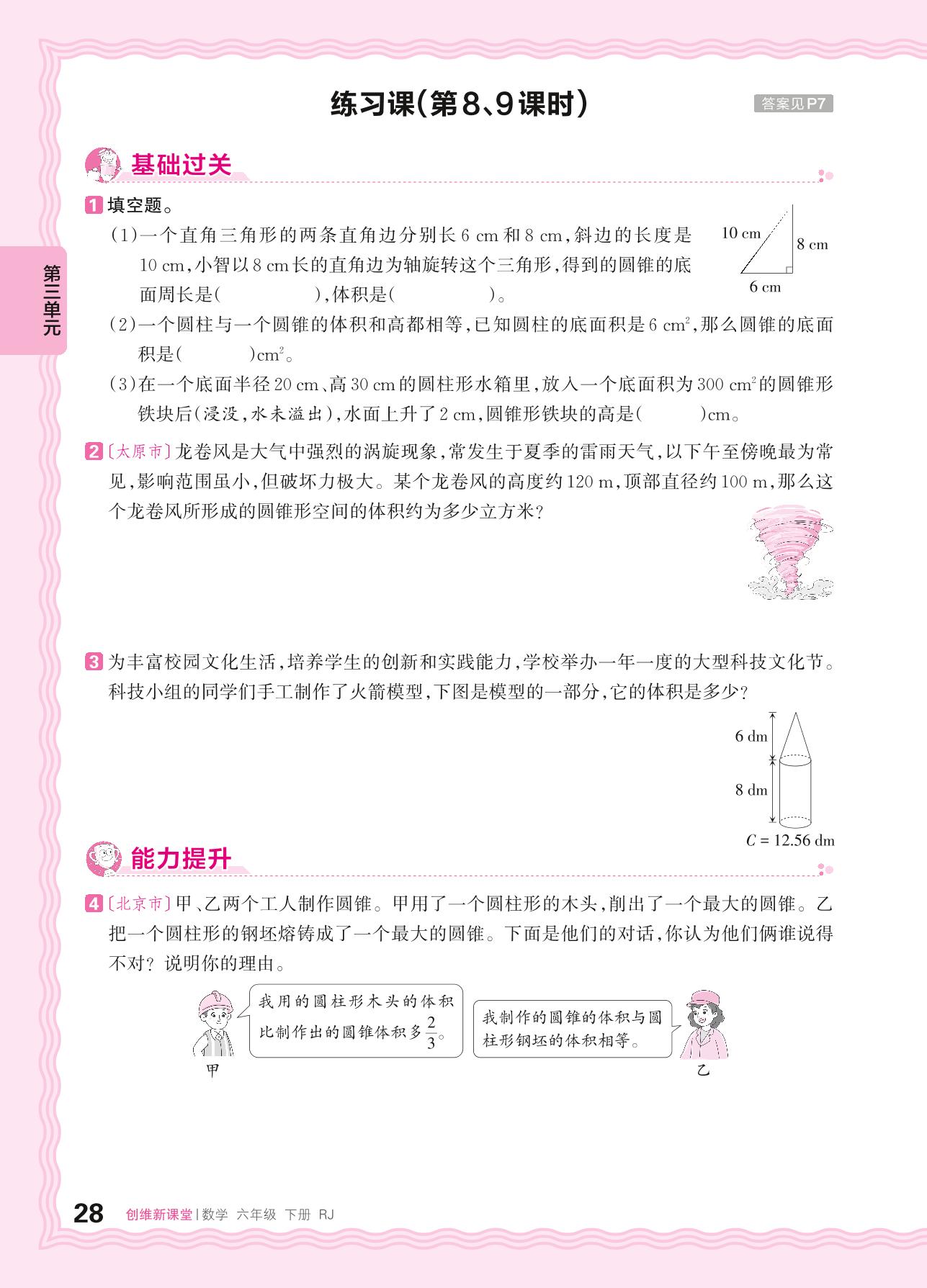 2024春下册六年级数学人教版 第三单元 圆柱与圆锥——圆锥的认识、圆锥的体积练习课
