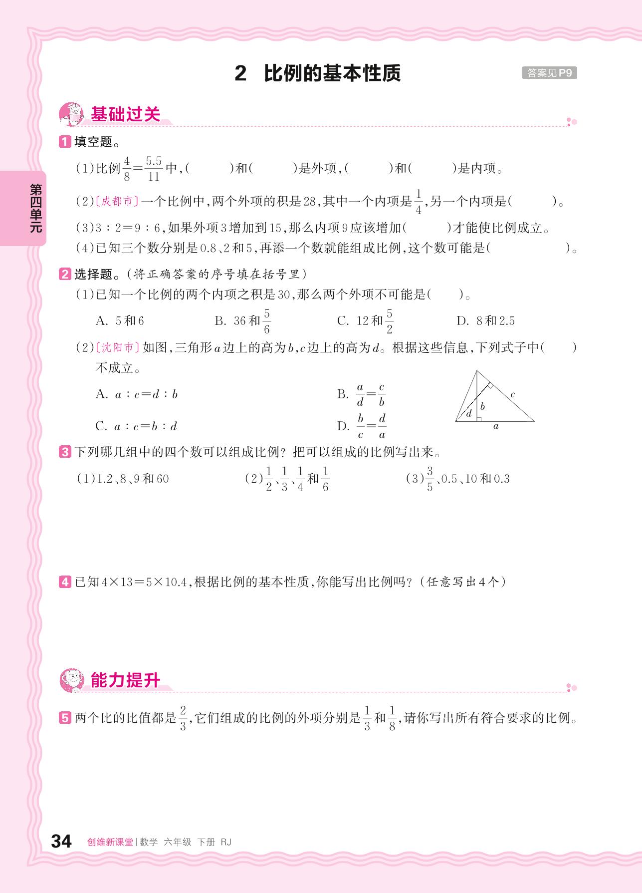 2024春下册六年级数学人教版 第四单元 比例——2. 比例的基本性质_R240122165938885