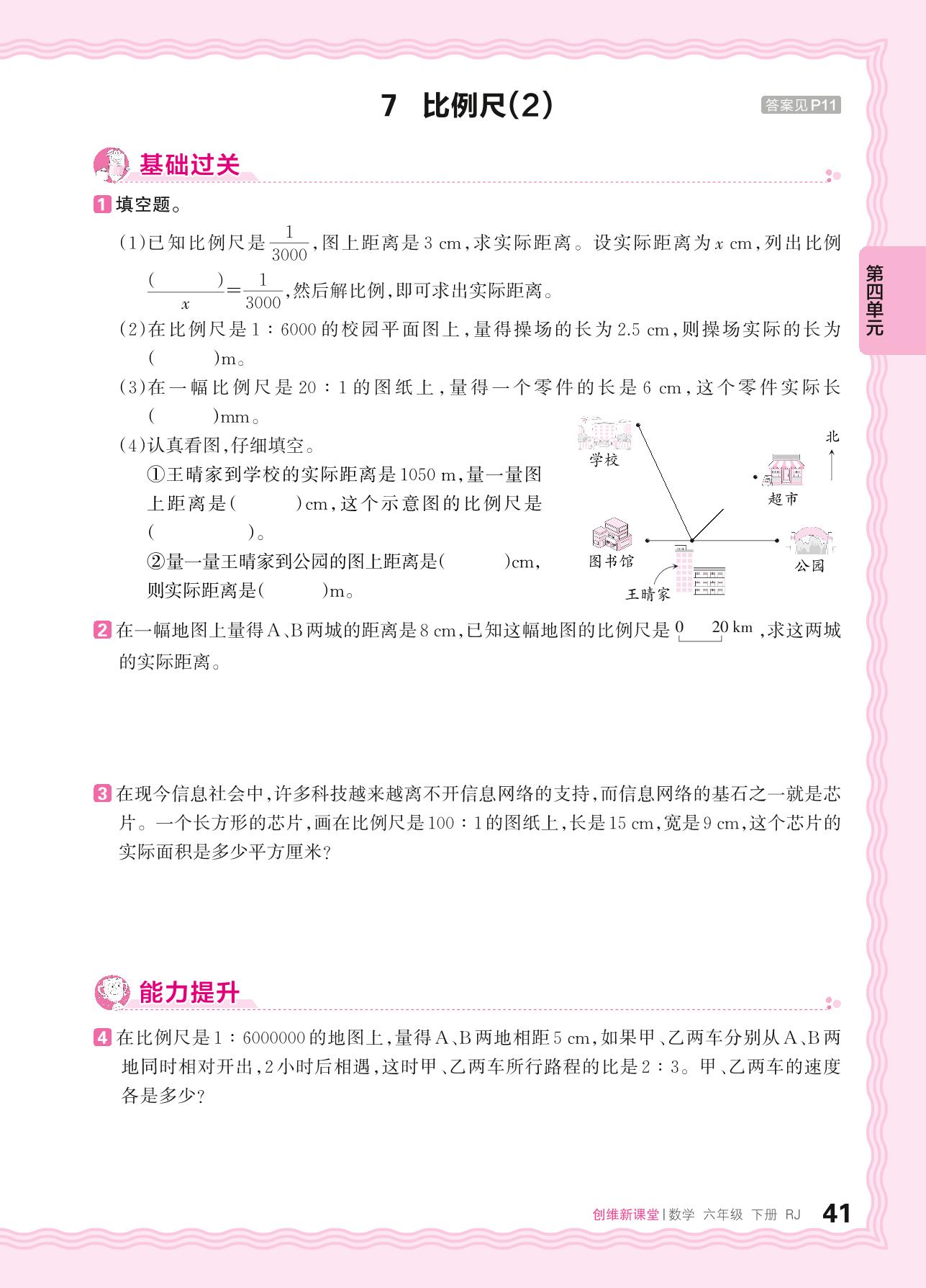 2024春下册六年级数学人教版 第四单元 比例——7. 比例尺(2)