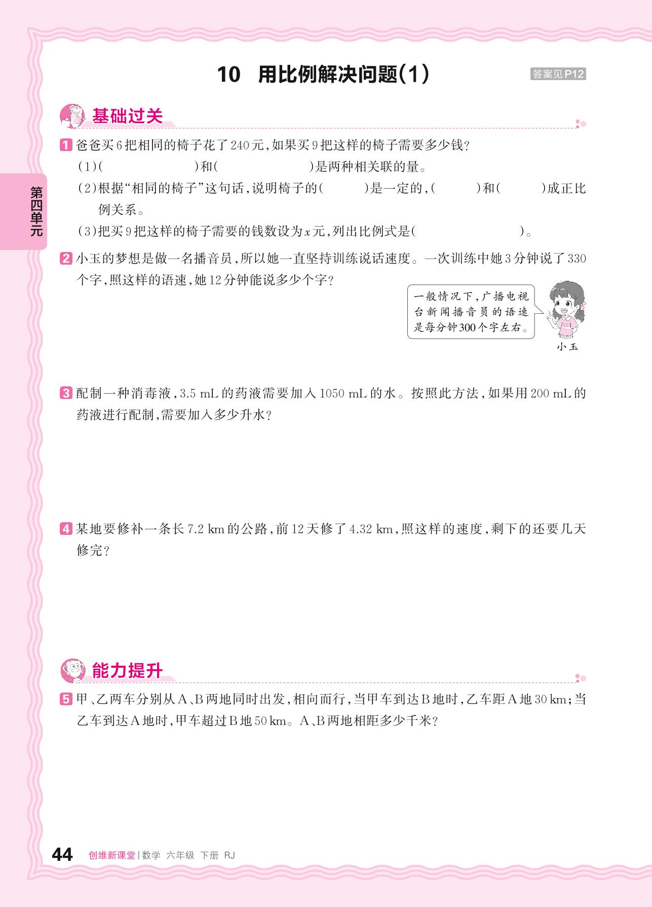 2024春下册六年级数学人教版 第四单元 比例——10. 用比例解决问题(1)