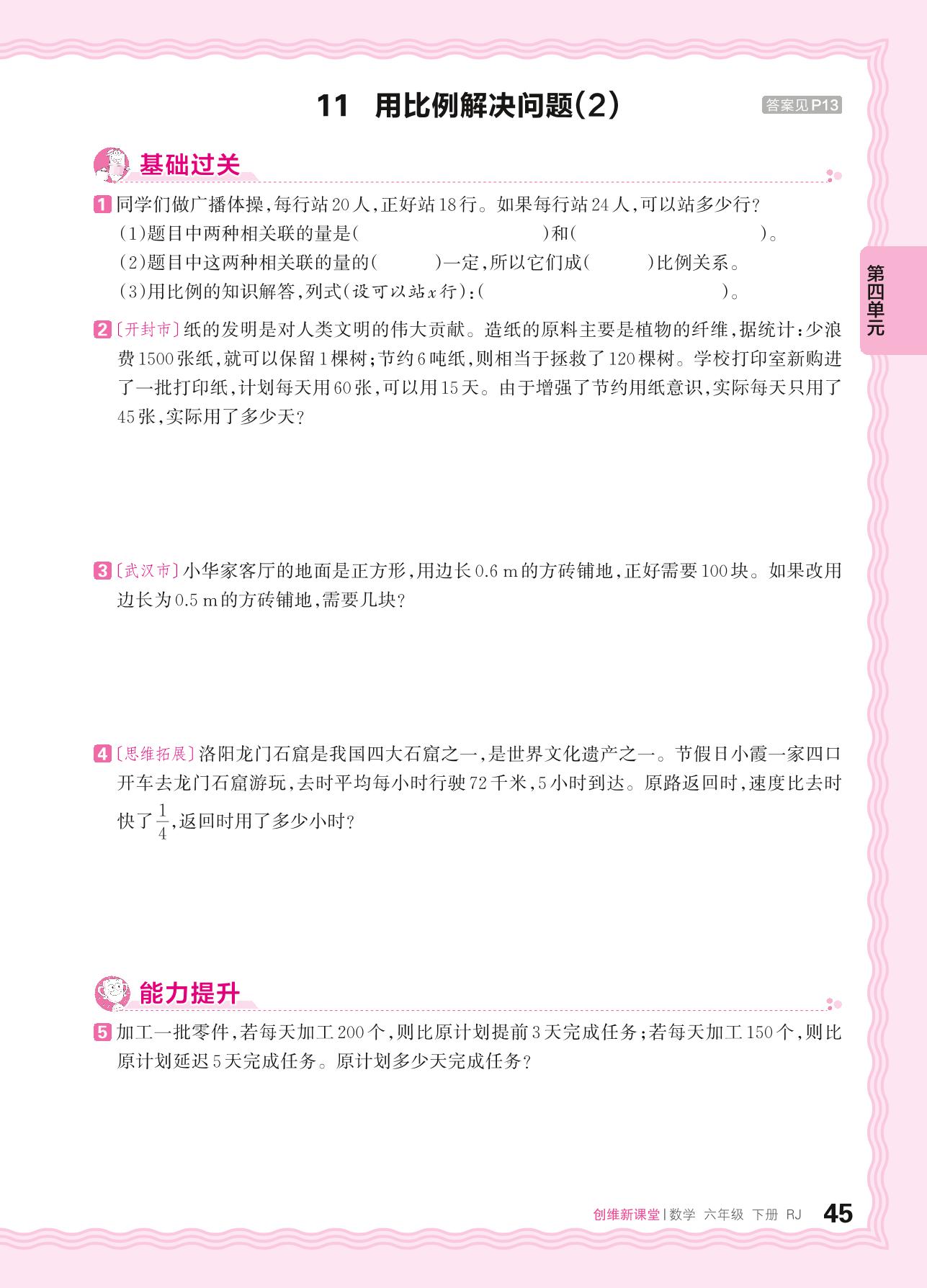 2024春下册六年级数学人教版 第四单元 比例——11. 用比例解决问题(2)