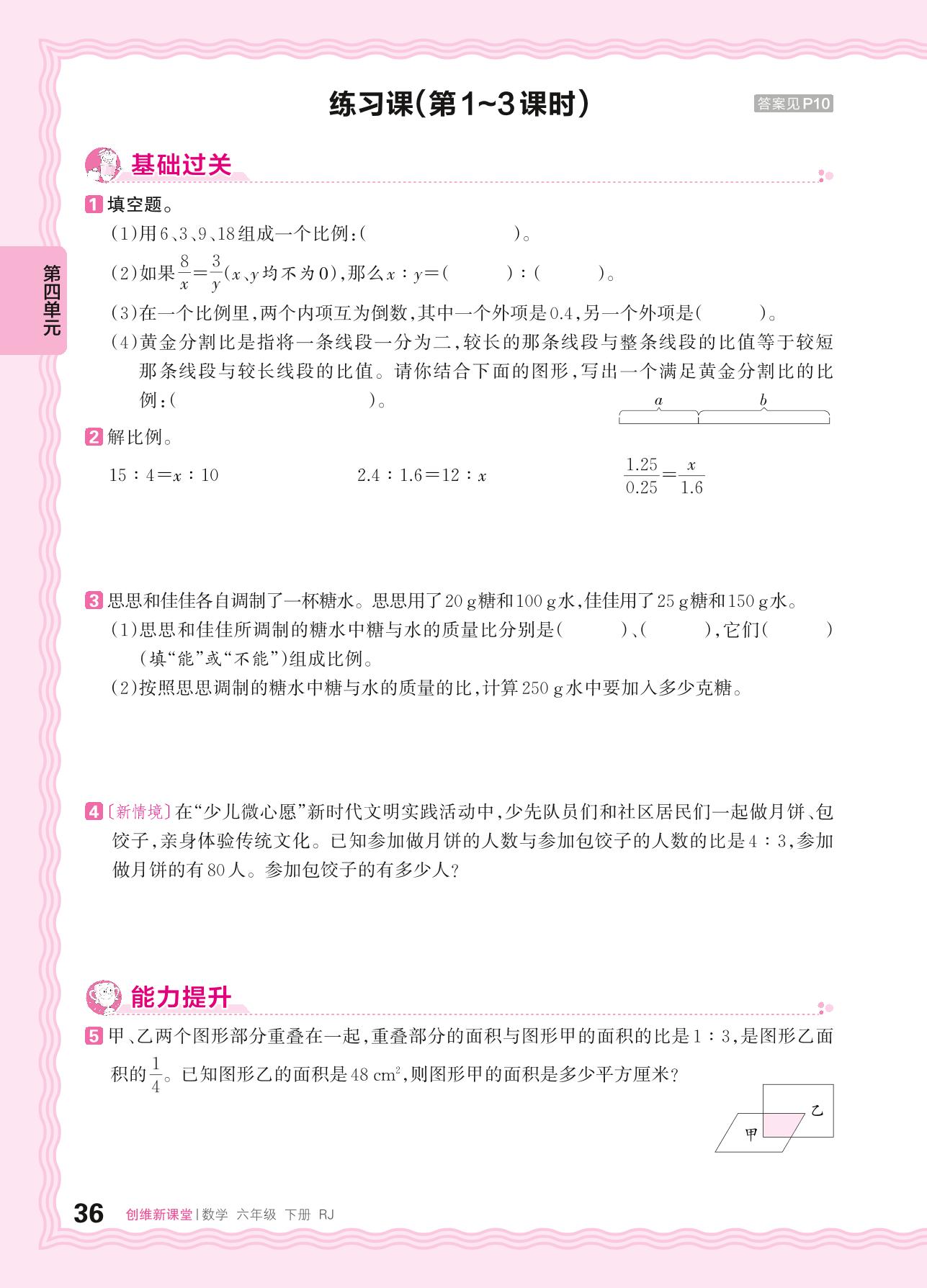 2024春下册六年级数学人教版 第四单元 比例——比例的意义、比例的基本性质、解比例练习课