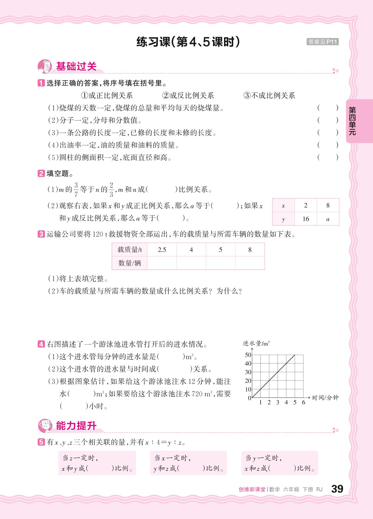 2024春下册六年级数学人教版 第四单元 比例——正比例、反比例练习课