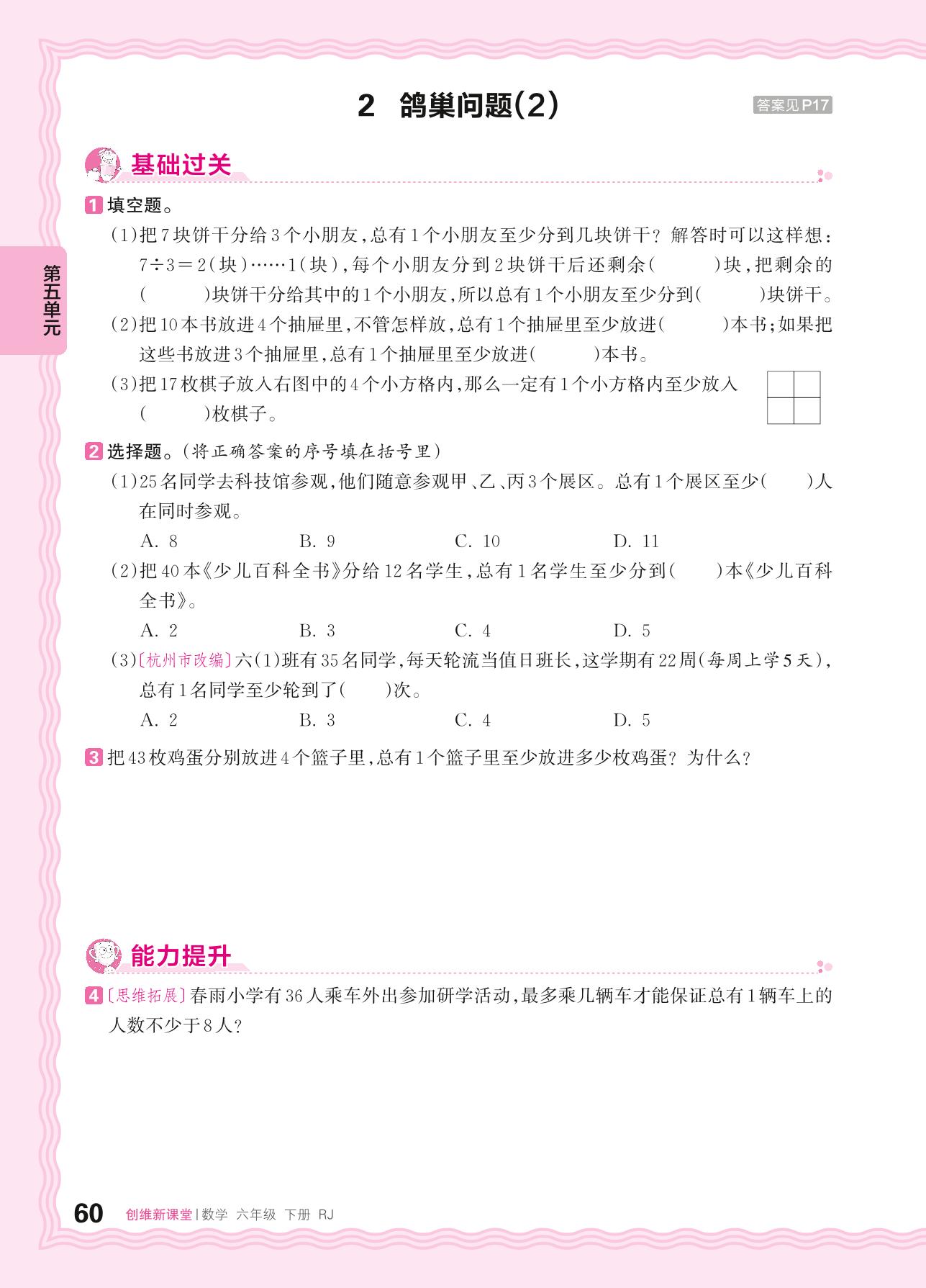 2024春下册六年级数学人教版 第五单元 数学广角 鸽巢问题(2)