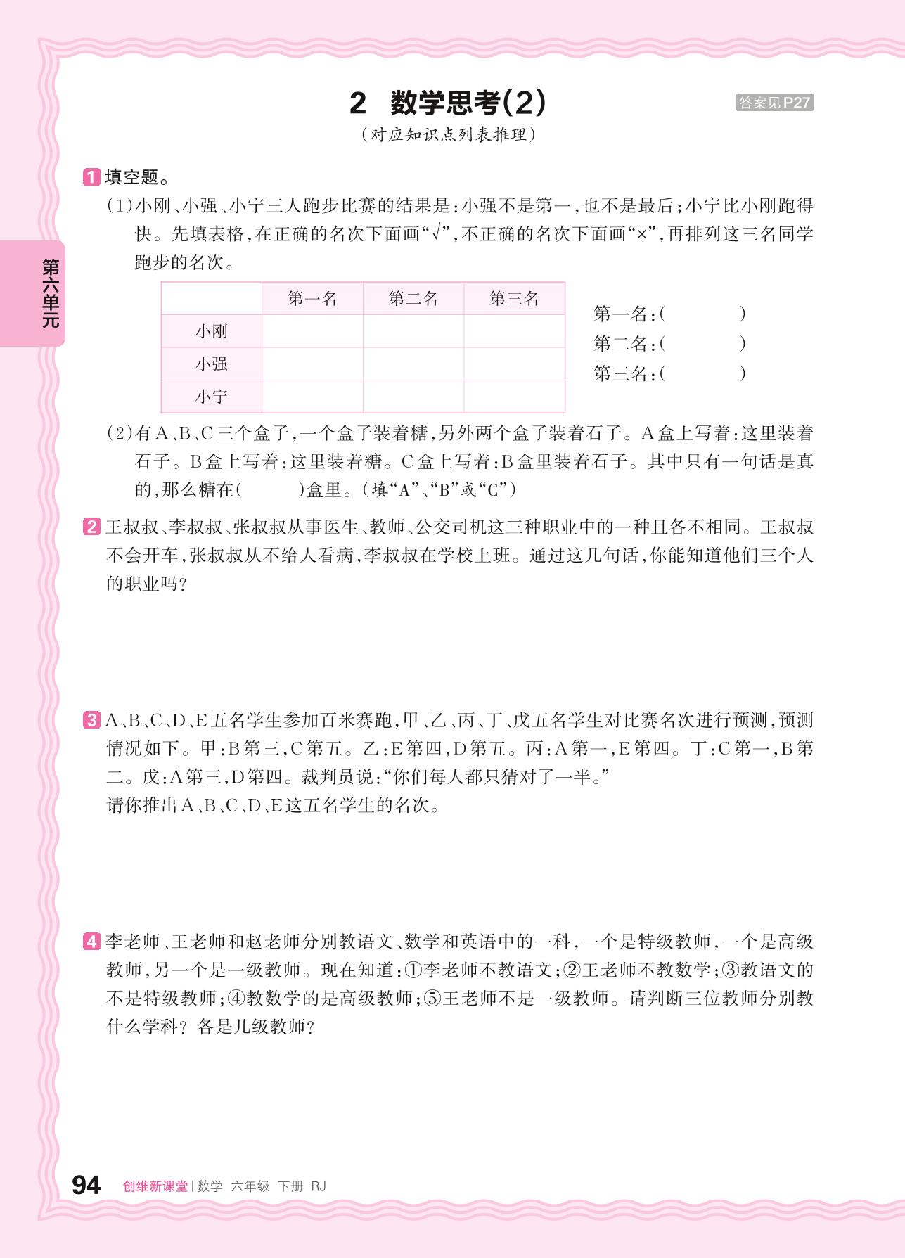2024春下册六年级数学人教版 第六单元 整理和复习(数学思考)——2. 数学思考(2)