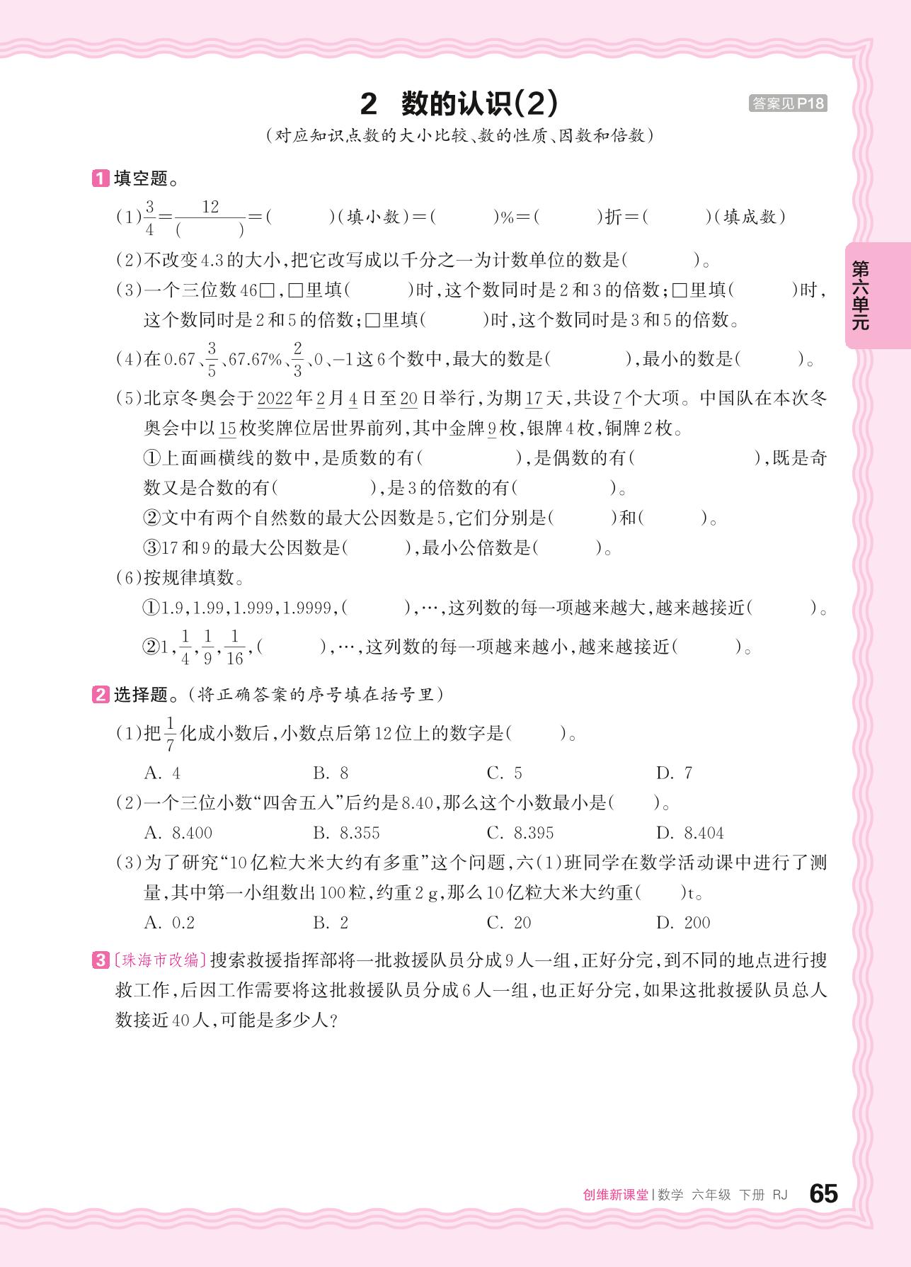 2024春下册六年级数学人教版 第六单元 整理和复习(数与代数)——2. 数的认识(2)_R240122165949711
