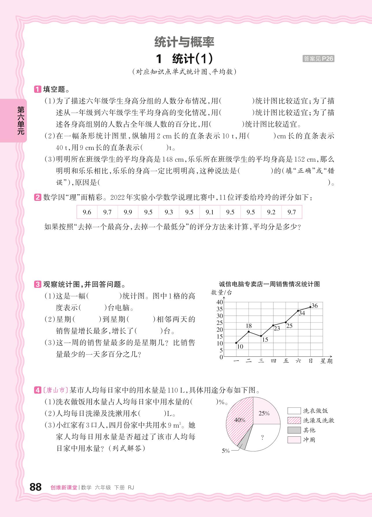 2024春下册六年级数学人教版 第六单元 整理和复习(统计与概率)——1. 统计(1)