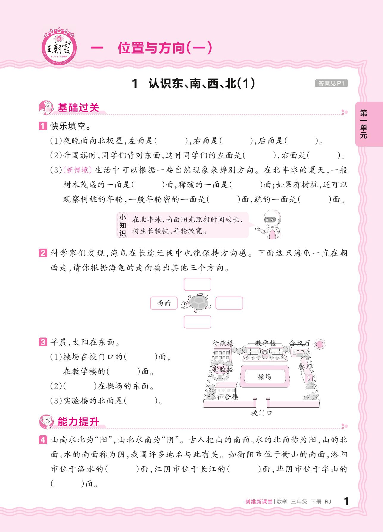 2024春下册三年级数学人教版 第一单元 位置与方向(一)——1. 认识东、南、西、北(1)_R240122172456921