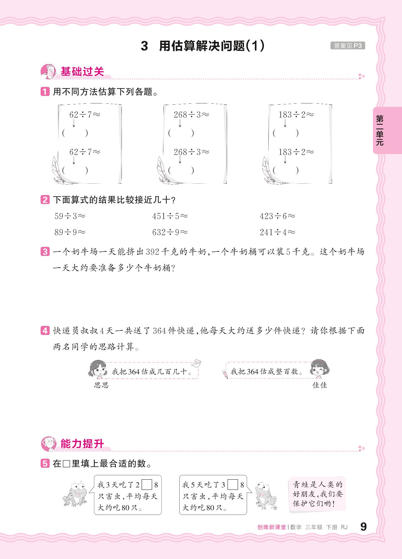 2024春下册三年级数学人教版 第二单元 除数是一位数的除法——3. 用估算解决问题(1)