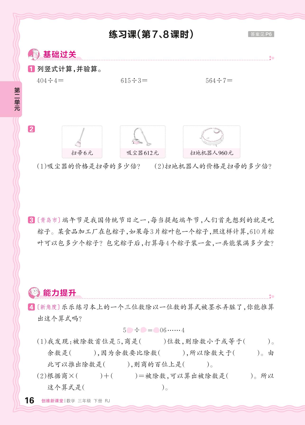 2024春下册三年级数学人教版 第二单元 除数是一位数的除法——商中间有0的除法、商末尾有0的除法练习课