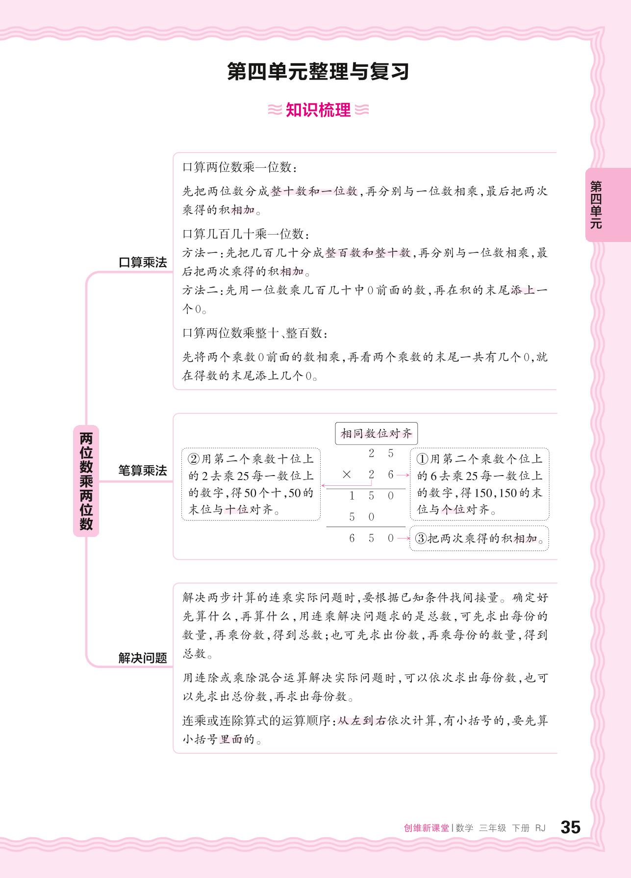 2024春下册三年级数学人教版 第四单元整理与复习