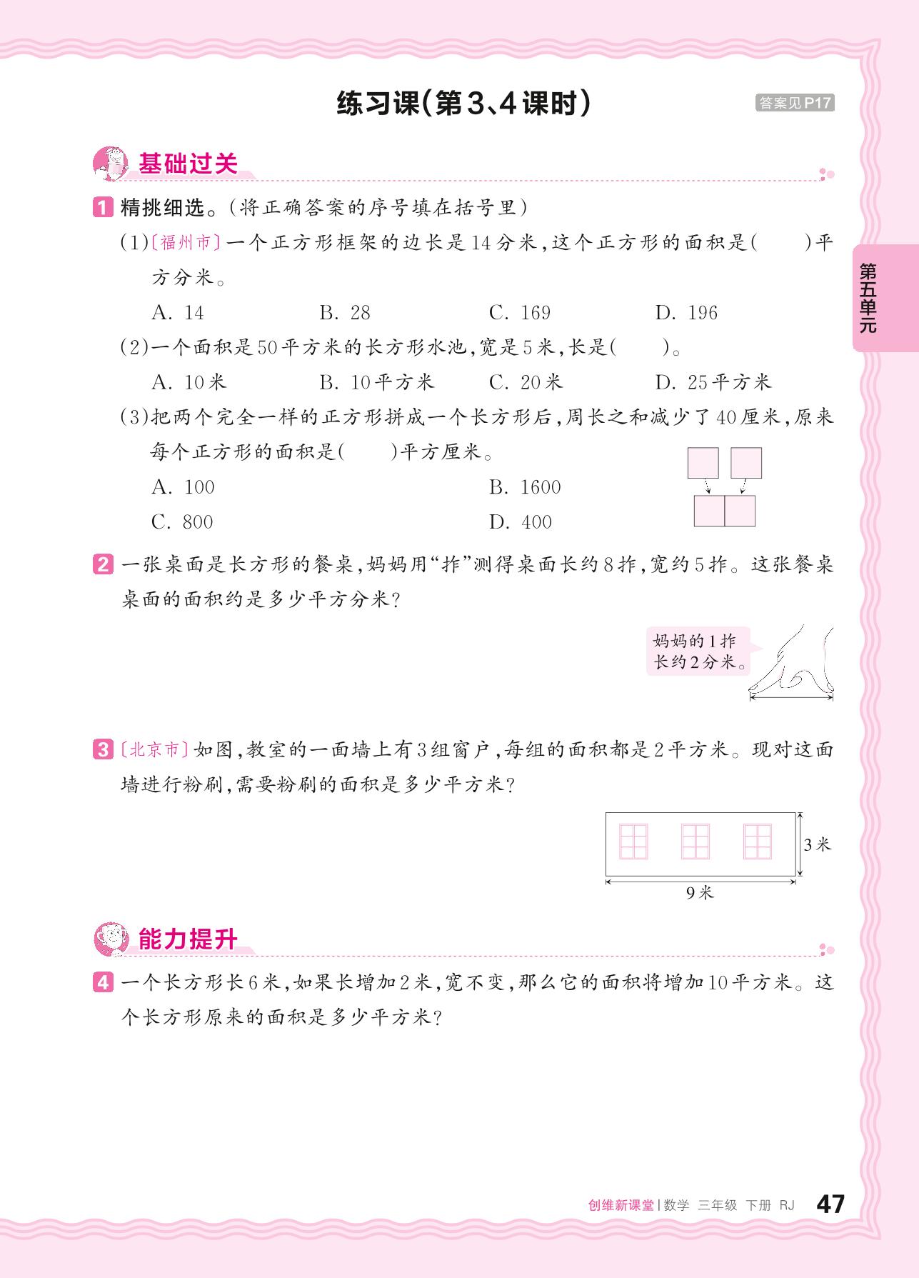 2024春下册三年级数学人教版 第五单元 面积——长方形、正方形面积的计算练习课