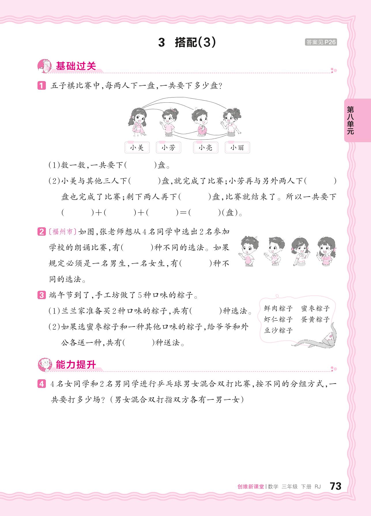2024春下册三年级数学人教版 第八单元 数学广角——搭配(二)(3)