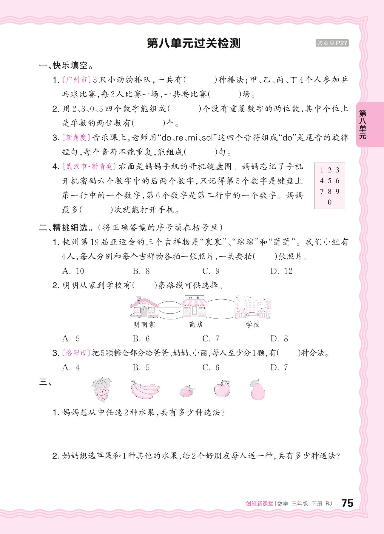 2024春下册三年级数学人教版 第八单元过关检测