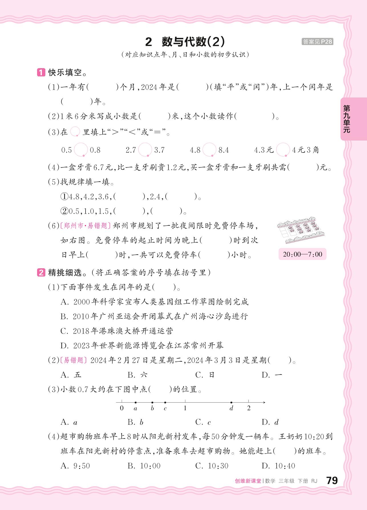 2024春下册三年级数学人教版 第九单元 总复习——2. 数与代数(2)_R240122172523385