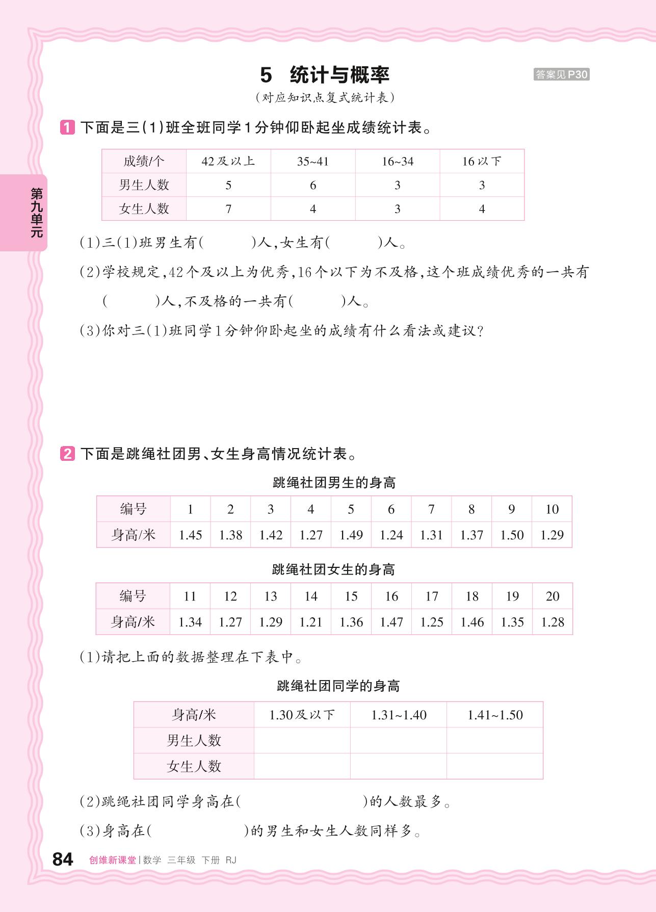 2024春下册三年级数学人教版 第九单元 总复习——5. 统计与概率