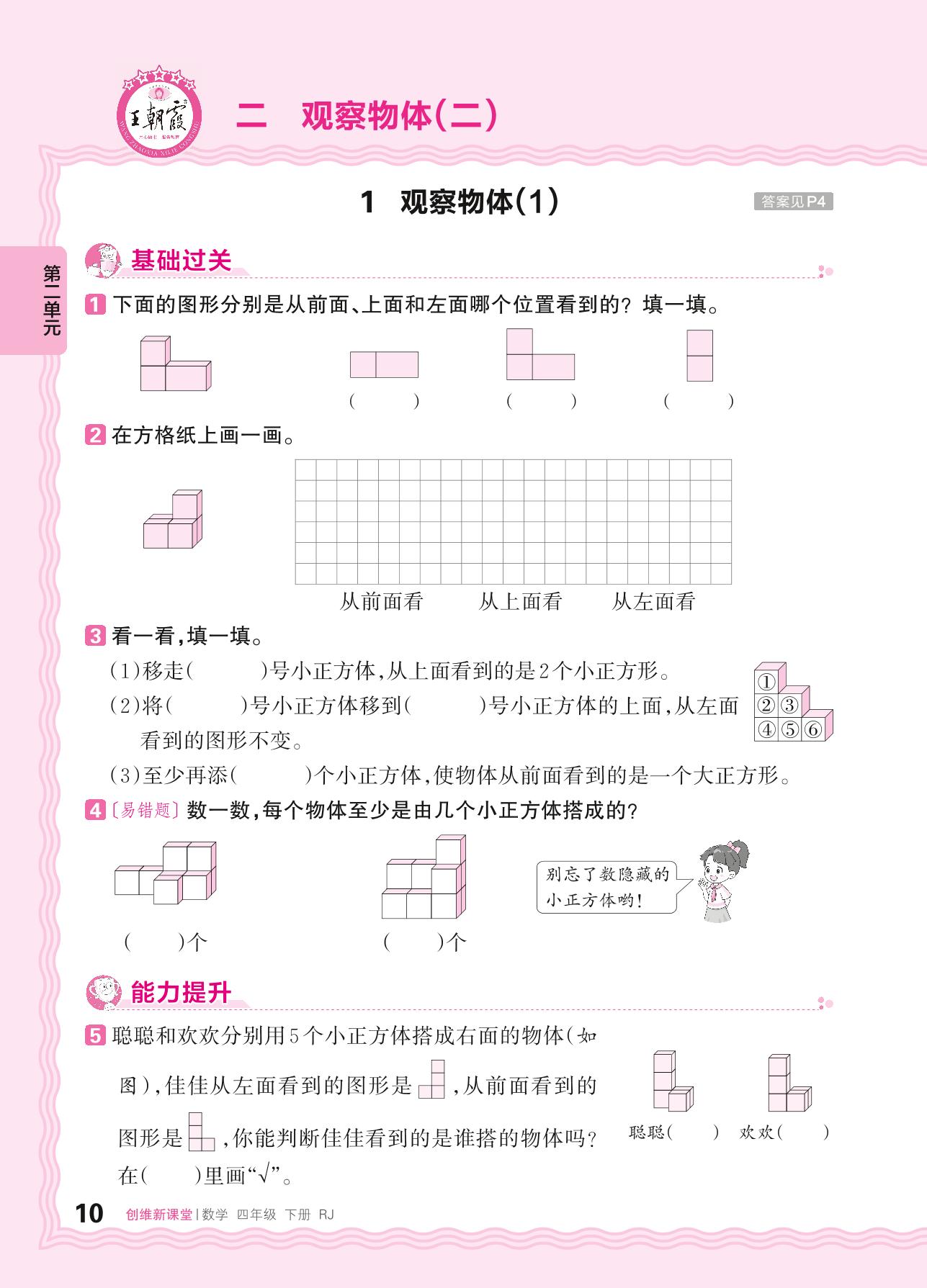 2024春下册四年级数学人教版 第二单元 观察物体(二)——1. 观察物体(1)_R240122173906982